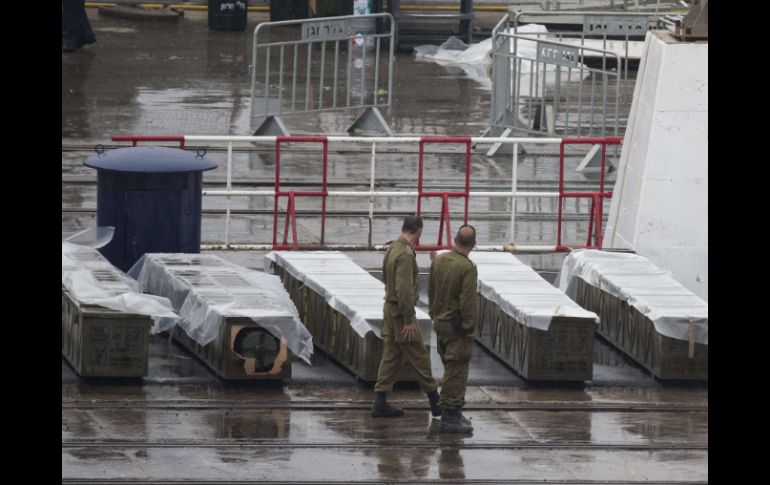 Internacional | El embarque llevaba armas enviadas por Irán hacia Gaza, indica ejército israelí Israel halla 30 cohetes de 160 kilómetros de alcance en un barco El embarque palestino Klos-C 5 llevaba armas enviadas por Irán hacia Gaza, indica ejército israelí Por: AFP 9 de marzo de 2014 - 11:23 hs Láminas de plastico se utilizaron para cubrir los cohetes M-320, que fueron interceptados a bordo del Klos-C 5. AFP / JERUSALÉN, ISRAEL (09/MAR/2014).- Cuarenta cohetes de un alcance de hasta 160 kms fueron descubiertos a bordo del barco interceptado por Israel, y que según el estado hebreo llevaba armas enviadas por Irán hacia Gaza, indicó el domingo el ejército israelí. "El ejército concluyó esta noche (del domingo) la descarga e inspección de los contenedores descubiertos a bordo del Klos-C 5. Se hallaron a bordo: 40 cohetes del tipo M-302, de un alcance de hasta 160 kilómetros, 181 obuses de mortero de 122mm, unas 400 mil balas de calibre 7.62", precisó el ejército en un comunicado. Temas Asia Conflicto Israel-Palestina Israel Palestina Lee También México hará ajustes a los aranceles a países asiáticos Familiares relatan vivencias de los rehenes liberados en Gaza Hamás entrega cuatro cuerpos más de rehenes en Gaza "Trump puede ser presidente de la Paz o de la Guerra, pero no ambos": ministro iraní Recibe las últimas noticias en tu e-mail Todo lo que necesitas saber para comenzar tu día Registrarse implica aceptar los Términos y Condiciones