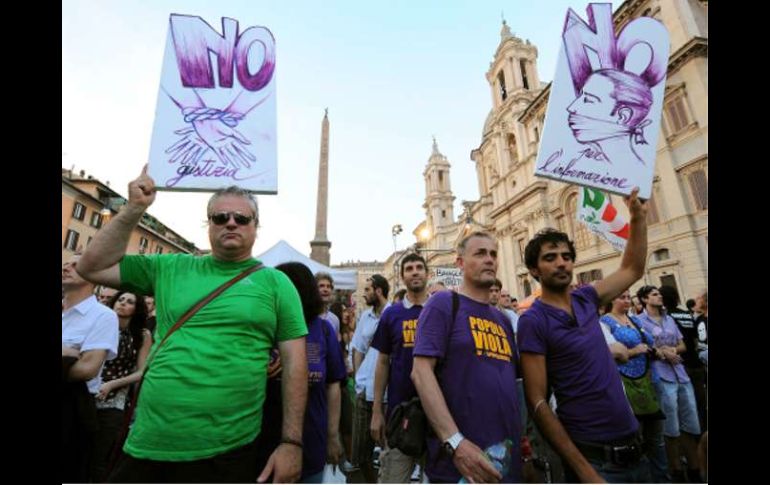 ROMA, ITALIA (01/JUL/2010).- Miles de personas se manifestaron hoy en el centro de 22 ciudades italianas para decir "no" a la llamada "ley mordaza", el proyecto de ley que prevé multas y penas de cárcel para quienes difundan el contenido de las escuchas telefónicas incluidas en investigaciones oficiales.Las convocatoria, realizada por la Federación Nacional de la Prensa Italiana (FNSI) y proyectada también para París, Londres y Bruselas, tuvo el apoyo de organizaciones sociales y formaciones políticas opositoras como el Partido Demócrata (PD) , Italia de los Valores (IDV) y los Verdes.El secretario general del PD, Pier Luigi Bersani, el ex magistrado Antonio di Pietro, líder de IDV, o escritores como Carlo Lucarelli acudieron a la concentración de Roma, donde el calor no impidió que la céntrica Piazza Navona se llenara de ciudadanos, muchos de ellos amordazados.Bersani se declaró "a favor de un retiro absoluto del texto" y consideró que la ley debe "formularse de nuevo".A Piazza Navona también acudió Patrizia D'Addario, la prostituta de lujo que aseguró haber mantenido relaciones sexuales con el primer ministro, Silvio Berlusconi, y que hizo pública su relación con "Il Cavaliere" a través de conversaciones grabadas por ella misma."Si en aquel momento hubiera existido esta ley, vosotros hubierais ido a la cárcel y mi verdad no hubiera salido nunca a la luz" , declaró D'Addario a un grupo de periodistas al comienzo de la concentración.Los manifestantes llenaron la plaza de ejemplares de la Constitución italiana de 1948 y de pancartas en las que podían leerse lemas como "La prensa libre es belleza" , "La ley mordaza niega a los ciudadanos el derecho de estar informados" o "No a la mordaza del Estado"."Queremos que Italia esté informada, que los italianos tengan derecho a leer las noticias sobre las cuestiones importantes para el país, y esta ley sólo sirve para tutelar a quien tiene algo que esconder" , dijo a Efe Nando Bonessio, líder de los Verdes en la región del Lacio.En las concentraciones de las diversas ciudades italianas estuvieron representados todos los rotativos que el pasado 11 de junio dejaron su portada en blanco para denunciar los límites que la nueva ley impone a la libertad de información.Antes de que el 29 de julio el texto llegue al pleno de la Cámara de los Diputados para su debate y aprobación, los periodistas han convocado una "jornada de silencio" el próximo día 9 en la que está previsto un paro informativo de 24 horas.Coincidiendo con las manifestaciones contra la "ley mordaza" , el presidente de la Cámara de los Diputados, Gianfranco Fini, apostó en un acto en Roma por una reflexión sobre el texto, mientras que el presidente de la República, Giorgio Napolitano, mostró desde Malta su "preocupación" por los puntos más críticos y aseguró que hará una valoración en el ámbito de sus competencias.En la manifestación se aprovechó también para protestar contra la segunda versión del llamado "Laudo Alfano" , la ley de inmunidad a los altos cargos del Estado italiano y que revisa el texto que invalidó en octubre pasado el Tribunal Constitucional de Italia.