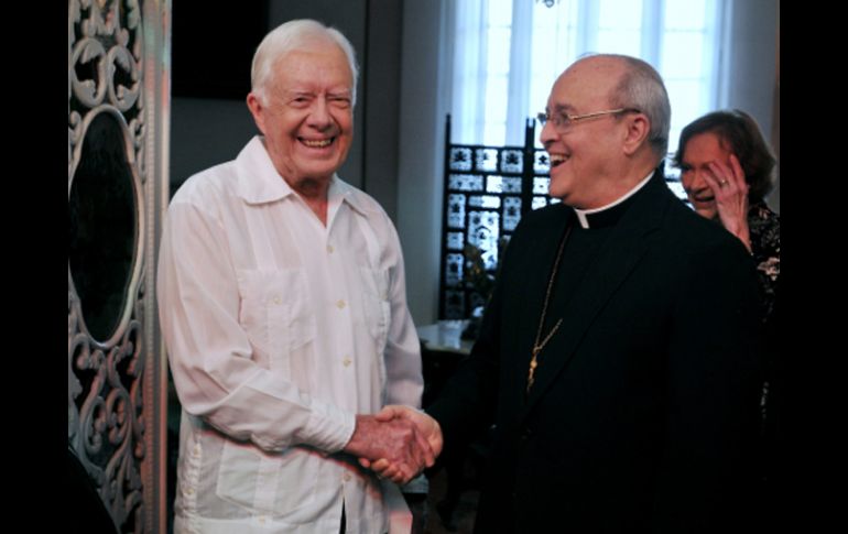 Internacional | La gira del ex presidente de EU terminará el miércoles Jimmy Carter platica con autoridades religiosas en visita a Cuba El ex Jefe de la Casa Blanca, quien se propone auscultar las posibilidades de una mejoría de las tensas relaciones entre Cuba y Estados Unidos, fue recibido esta mañana en la isla Por: NTX 28 de marzo de 2011 - 20:06 hs El expresidente de EU Jimmy Carter (i) estrecha la mano del cardenal cubano Jaime Ortega (d). EFE / LA HABANA, CUBA (28/MAR/2011).- El ex presidente de Estados Unidos Jimmy Carter se reunió hoy con los dirigentes de la pequeña comunidad judía de Cuba, en la primera actividad pública de su visita privada de tres días a la isla, invitado por el mandatario cubano Raúl Castro. Carter, de 86 años, visitó la tarde del lunes la Comunidad Hebrea, en el céntrico distrito del Vedado, poco antes de reunirse con el Arzobispo de La Habana, Cardenal Jaime Ortega, 24 horas antes de su programado encuentro con el presidente cubano. Bajo una temperatura de más de 30 grados, anticipo del verano, se abstuvo de formular declaraciones a la prensa, tanto durante su visita a los líderes judíos como al cardenal Ortega quien, al término de la reunión de 55 minutos, tampoco habló con los reporteros. El ex Jefe de la Casa Blanca, quien se propone auscultar las posibilidades de una mejoría de las tensas relaciones entre Cuba y Estados Unidos, fue recibido esta mañana en el aeropuerto por el canciller Bruno Rodríguez. El conflicto entre ambos enemigos ideológicos se crispó tras la condena el pasado 12 de marzo a 15 años de prisión del contratista estadounidense Alan Gross, acusado de "actos contra la independencia o la integridad territorial del Estado". Vestido con una guayabera blanca de mangas largas Carter, acompañado por su esposa Rosalynn, permaneció alrededor de una hora con los líderes judíos con quienes se actualizó sobre la situación de esta comunidad en la nación caribeña. El tema de Gross, de 61 años y cuya liberación ha pedido el gobierno de Barack Obama, estuvo ausente de su plática, según la presidenta de la Comunidad Hebrea, Adela Dworin. "No se habló del tema, no hablamos nada de política, le explicamos acerca de la comunidad judía en Cuba, cuantos miembros tiene y que practicamos abiertamente nuestra religión, que es una comunidad vibrante", aseguró Dworin a reporteros. Estados Unidos insiste en que Gross viajó a Cuba para ayudar a miembros de la comunidad judía a conectarse vía internet con otras comunidades de ese país en el mundo, y consideró su arresto (3 diciembre 2009) como un impedimento importante para el avance del diálogo entre ambos países. La religiosa, que expresó esperanza de que algún día mejoren las relaciones La Habana-Washington, estuvo acompañada por David Prinstein, vicepresidente del patronato de la Comunidad Hebrea y Hella Eskenazi, secretaria ejecutiva del Patronato. Por la parte cubana asistió Johana Tablada, subdirectora de la dirección de América del Norte de la Cancillería. Para este martes, Carter, Premio Nobel de la Paz, tiene previsto visitar el Convento de Belén, en el Centro Histórico de la capital de Cuba y después tiene prevista una reunión en el Palacio de la Revolución con Castro. Alrededor del mediodía del miércoles, poco antes de su partida, está prevista una conferencia de prensa. Durante su estancia en La Habana, sostendrá varias reuniones para "conocer las nuevas políticas económicas y detalles sobre el próximo Congreso del Partido Comunista, además de analizar formas de mejorar las relaciones entre Cuba y Estados Unidos", indicó el Centro Carter. El VI congreso del PCC, del 16 al 19 de abril próximo, debe aprobar el programa de reformas delineado por Raúl Castro para "actualizar" el modelo socialista, en medio de una de las más graves crisis económicas de las últimas décadas. La anterior visita en mayo de 2002 tuvo, entre otros hitos, su reunión con el entonces presidente Fidel Castro y la conferencia que pronunció en el aula magna de la Universidad de La Habana. Carter es el primer ex presidente de Estados Unidos que visita Cuba después del triunfo de la Revolución en 1959, y el ex mandatario Fidel Castro ha externado elogios a su presidencia (1977-1981) durante la cual se instalaron Secciones de Intereses en ambas capitales. Temas América Latina Cuba Jimmy Carter Recibe las últimas noticias en tu e-mail Todo lo que necesitas saber para comenzar tu día Registrarse implica aceptar los Términos y Condiciones