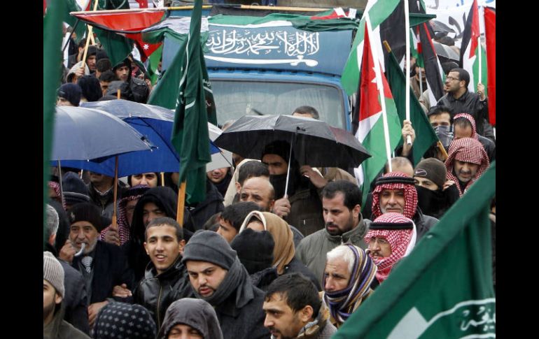 Internacional | Buscan reformas políticas Jordanos exigen al rey un Gobierno parlamentario Se reunen un millar de personas en protesta organizada por la oposición Por: EL INFORMADOR 5 de febrero de 2011 - 04:29 hs AMMÁN, JORDANIA (05/FEB/2011).- Unas mil personas se congregaron en la capital de Jordania para pedir reformas políticas en este reino y expresar su apoyo a la movilización del pueblo egipcio contra su presidente. La manifestación, organizada por la principal fuerza de oposición, el Frente de Acción Islámica (FAI), con el apoyo de partidos de izquierda, se inició tras la oración del viernes en las mezquitas. También gritaron su “apoyo total al gran pueblo egipcio” que pide la renuncia del presidente Hosni Mubarak, si bien el islamista FAI ya ha declarado que, contrariamente a lo que sucede en Egipto, su formación no exige un cambio de régimen en Jordania, sino reformas políticas. Líderes de grupos islámicos de Jordania pidieron al rey Abdalá II que apruebe reformas políticas que conduzcan a la formación de un “Gobierno parlamentario”. En un comunicado, los Hermanos Musulmanes informan de la reunión que el monarca mantuvo el jueves con el líder de los Hermanos Musulmanes, Hamam Said, y con el secretario general de su brazo político, el FAI, Hamzeh Mansur, así como otros dirigentes políticos. “El movimiento islámico ha dejado claro que las reformas políticas deberían comenzar con una ley electoral moderna que adopte un sistema de representación proporcional y conduzca a la formación de un Gobierno parlamentario”. Hasta ahora, el rey se encarga de nombrar los ministros, que suelen ser elegidos entre personalidades de la vida pública, debido a la ausencia de grandes coaliciones o partidos políticos en el Parlamento, dominado por grupos tribales o pequeños grupos. El FAI no forma parte del Parlamento porque boicoteó las elecciones legislativas del 9 de noviembre pasado al considerar que no había condiciones adecuadas para asegurar una votación limpia. La petición de los Hermanos Musulmanes, según fuentes islámicas, forma parte de los esfuerzos de ese grupo para que Jordania se convierta en una monarquía constitucional. Temas Asia Medio Oriente Manifestaciones en el mundo Jordania Recibe las últimas noticias en tu e-mail Todo lo que necesitas saber para comenzar tu día Registrarse implica aceptar los Términos y Condiciones