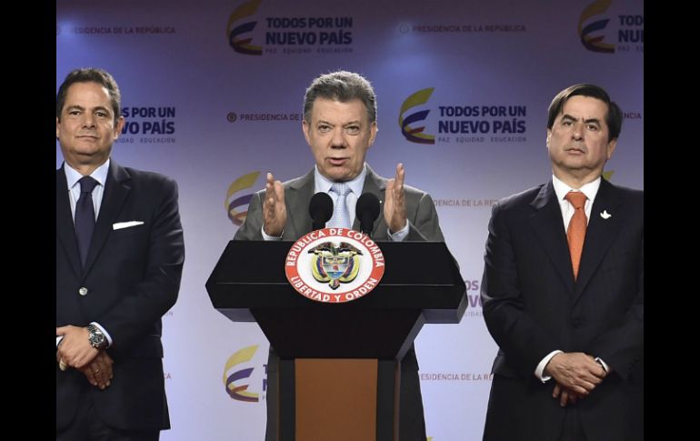 Internacional | El presidente colombiano asegura que los enfrentarán con todo el poder Juan Manuel Santos ordena ofensiva militar contra ELN El presidente colombiano asegura que los enfrentarán con todo el poder y con toda la contundencia de las Fuerzas Armadas Por: NTX 26 de octubre de 2015 - 18:24 hs El mandatario indicó que los uniformados realizaban acciones de protección de los comicios. EFE / C. Carrión BOGOTÁ, COLOMBIA (26/OCT/2015).- El presidente colombiano Juan Manuel Santos ordenó hoy intensificar las operaciones militares contra el rebelde Ejército de Liberación Nacional (ELN), que dejó 11 militares y un policía muertos en una emboscada en el departamento de Boyacá. "He ordenado al Ministro de Defensa y a las Fuerzas Armadas que redoblen los esfuerzos, intensifiquen sus acciones militares contra esta organización", dijo. Añadió que "para el ELN y todos aquellos que no entren en el camino de la paz, el mensaje es claro: los enfrentaremos con todo el poder y con toda la contundencia de nuestras Fuerzas Armadas". Consideró que los colombianos votaron el domingo en comicios regionales "por la paz", precisamente para que hechos trágicos como éstos no se registren. "La muerte de los miembros de nuestras Fuerzas Armadas deberá inspirarnos para seguir buscando la paz con quienes han depuesto su ánimo violento y a perseverar en la lucha contra quienes insisten en el camino de la violencia", sostuvo. El mandatario indicó que los uniformados realizaban acciones de protección de los comicios dentro del Plan Democracia en la región de Guaicán. Temas América Latina Colombia ELN Juan Manuel Santos Recibe las últimas noticias en tu e-mail Todo lo que necesitas saber para comenzar tu día Registrarse implica aceptar los Términos y Condiciones