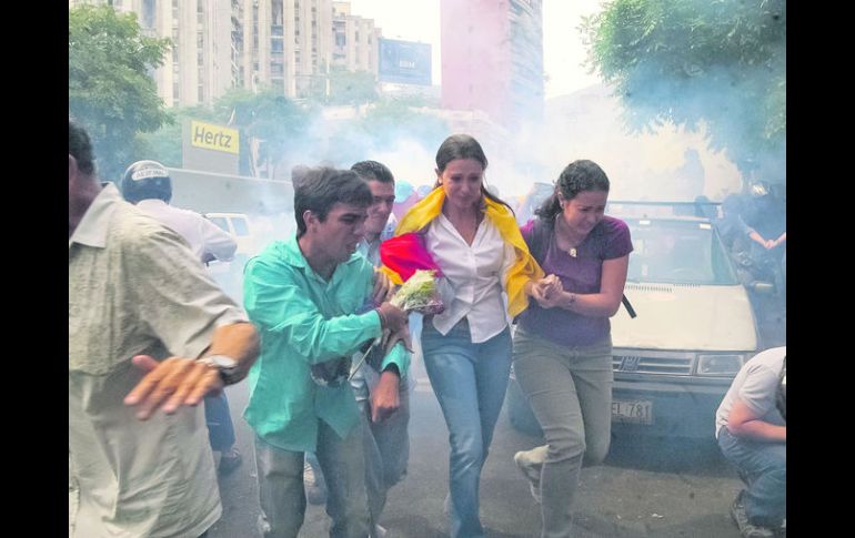 Internacional | El Tribunal Supremo de Justicia ratifica el desafuero de la diputada La Policía reprime marcha a favor de Corina Machado El Tribunal Supremo de Justicia ratifica el desafuero de la diputada Por: EL INFORMADOR 2 de abril de 2014 - 00:02 hs La ex diputada Corina Machado (al centro) es ayudada por sus simpatizantes para salir de la manifestación reprimida por la Policía. EFE / CARACAS, VENEZUELA (02/ABR/2014).- La Policía de Venezuela dispersó con gases lacrimógenos y perdigones a cientos de simpatizantes de la líder opositora María Corina Machado, quienes la acompañaban en una marcha hacia el Parlamento venezolano. El Tribunal Supremo de Justicia ratificó el desafuero de la diputada. “Hoy se dio un contundente golpe de Estado a la constitución”, dijo Machado en alusión al dictamen del Tribunal Supremo, al que ha señaló de estar al servicio del oficialismo e integrado por “juristas del terror”. Ante sus seguidores, la ex diputada catalogó su destitución como “un crimen sin precedente a la soberanía del pueblo... no solo se ha destruido la democracia en Venezuela, se ha desmantelado la República”. La dirigente “exigió” la renuncia de la fiscal general de Venezuela, Luisa Ortega y de la defensora del pueblo, Gabriela Ramírez. Los manifestantes, que portaban banderas venezolanas y gorras con el tricolor nacional fueron repelidos cuando intentaron traspasar el cordón de cientos de policías nacionales para acompañar a Machado tras finalizar su discurso. La diputada —que parecía estar afectada por los gases lanzados previamente cerca de la concentración— fue empujada e insultada por desconocidos y poco después se subió a una motocicleta y se alejó del lugar, sin poder pisar la Asamblea, donde estaba convocada una sesión ordinaria. Hace una semana la mayoria oficialista del Parlamento decidió la pérdida de su investidura en vista de que Machado aceptó la representación alterna de Panamá para asistir a una sesión de la Organización de Estados Americanos (OEA), donde intentó sin éxito exponer la situación que vive Venezuela, desde principios de febrero. Ayer, el oficialismo venezolano presntó ante el Tribunal Supremo de Justicia una solicitud para que la dirigente opositora sea investigada por traición a la patria, tras aceptar la oferta de Panamá. FRASE"¿Por qué me quieren callar? Porque le tienen miedo a la verdad y terror a este pueblo en la calle "María Corina Machado, líder opositora venezolana. Temas América Latina Venezuela Manifestaciones en el mundo Lee También ¿Dónde ver EN VIVO el partido de J13 Cruz Azul vs América? Trump asegura que Maduro le ofreció 'de todo' para evitar conflictos con EU Zonas del EOU donde aún hay boletos para el Cruz Azul vs América Marchas CDMX: HOY, 17 de octubre, estas son las afectaciones viales Recibe las últimas noticias en tu e-mail Todo lo que necesitas saber para comenzar tu día Registrarse implica aceptar los Términos y Condiciones