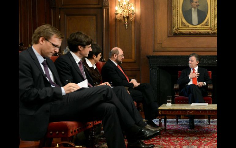Internacional | La UE espera que los grupos guerrilleros liberen pronto a todos sus rehenes La UE pide a guerrillas colombianas liberar a todos sus rehenes La UE espera que los dos grupos guerrilleros ordenen pronto la liberación de todos sus rehenes Por: NTX 15 de febrero de 2013 - 18:23 hs Martin Schulz y Juan Manuel Santos dialogan sobre las guerrillas. EFE / BOGOTÁ, COLOMBIA (15/FEB/2013).- El presidente del Parlamento Europeo (PE), Martin Schulz, pidió hoy a las Fuerzas Armadas Revolucionarias de Colombia (FARC) y al Ejército de Liberación Nacional (ELN) que liberen de inmediato a todas las personas que se encuentran en su poder. Schulz, quien finalizó este viernes una visita de dos días a Colombia, señaló que la Unión Europea (UE) espera que los dos grupos guerrilleros ordenen pronto la liberación de todos sus rehenes, además de los que fueron liberados este viernes. Por otra parte, manifestó que la UE sigue con atención los diálogos de paz que mantienen el gobierno colombiano y las FARC desde el 19 de noviembre pasado en La Habana, Cuba. Schulz indicó que la Unión Europea "en su momento, estará apoyando al gobierno colombiano en lograr el justo equilibrio entre justicia y paz". "La paz y la reconciliación en Colombia es posible", concluyó el funcionario europeo al tiempo que reconoció la dificultad de las negociaciones para buscar una salida política al conflicto armado interno en este país sudamericano. Temas América Latina FARC Colombia Unión Europea ELN Recibe las últimas noticias en tu e-mail Todo lo que necesitas saber para comenzar tu día Registrarse implica aceptar los Términos y Condiciones