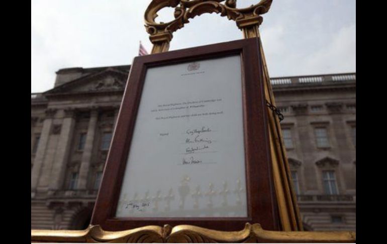 Internacional | La primera niña de la pareja real es la cuarta heredera al trono británico La duquesa de Cambridge da a luz a una niña La primera niña de la pareja real es la cuarta heredera al trono británico y llevará el titulo de Su Majestad Real Princesa de Cambridge Por: NTX 2 de mayo de 2015 - 06:53 hs LONDRES, INGLATERRA (02/MAY/2015).- La esposa del príncipe Guillermo de Inglaterra, Kate Middleton, duquesa de Cambridge, quien estuvo acompañada en todo momento de su esposo, dio a luz a las 08:34 horas a una niña que pesó 3.76 kilogramos, anunció el Palacio de Kensington. La reina Isabel II, su esposo el duque de Edimburgo, el príncipe Carlos y su esposa Camila, el príncipe Enrique y los miembros de la familia Middleton han sido informados y "están encantados con la noticia", informó el palacio en un comunicado. "Su majestad y su hija están bien" señaló el escueto comunicado que no informó si la duquesa permanecerá esta noche en la unidad privada Lindo Wing del hospital de St. Mary. Los duques de Cambridge, quienes se casaron en abril de 2011, tienen un hijo, el príncipe Jorge de Cambridge (de un año y diez meses), tercero en la línea de sucesión. La nueva integrante que llevará el título de Su Majestad Real Princesa de Cambridge, es la cuarta heredera al trono británico. Los médicos a cargo del parto fueron el ginecólogo Guy Thorpe-Beeston, el cirujano y ginecólogo de la Casa Real, Alan Farthing, el cirujano y ginecólogo de la reina Isabel, Dr. Sunit Godambe y el neonatólogo Huw Thomas. Los nombres de la princesa, cuarta en línea de sucesión al trono británico serán anunciados en su debido momento. Un anuncio oficial en un caballete de madera y oro será instalado en las puertas del palacio de Buckingham para anunciar oficialmente la llegada del nuevo integrante de la Casa de los Windsor. Temas Europa Familia Real Inglaterra Príncipe Guillermo Reina Isabel II Catalina duquesa de Cambridge Lee También Horóscopos de HOY 9 de octubre | Los signos en el AMOR, según Nana Calistar IberoMedia Global realiza su primer Encuentro Empresarial Internacional Sociales: Domingo en los toros, concluye la primera parte de la Temporada Grande 2025 Sociales: Nice de México celebra su 29 aniversario Recibe las últimas noticias en tu e-mail Todo lo que necesitas saber para comenzar tu día Registrarse implica aceptar los Términos y Condiciones