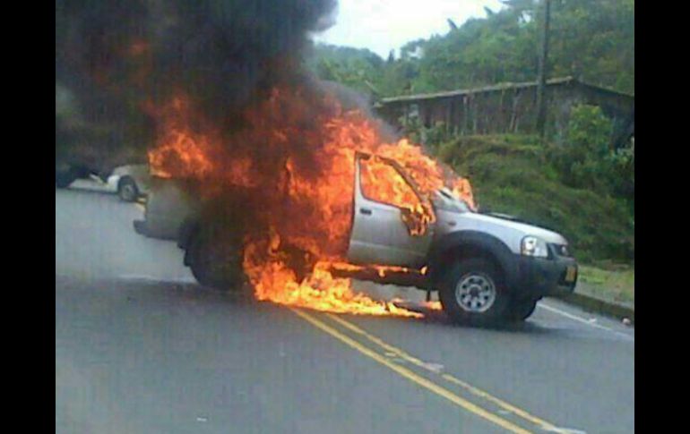 Internacional | Presuntos guerrilleros dinamitaron una carretera y quemaron dos vehículos Las FARC realizan atentados en frontera con Ecuador Presuntos guerrilleros dinamitaron una carretera, quemaron dos vehículos y secuestraron a cuatro miembros de la Fiscalía Por: EFE 17 de julio de 2014 - 21:27 hs Imagen de uno de los vehículos quemados. Tomada de @carosle. ESPECIAL / BOGOTÁ, COLOMBIA (17/JUL/2014).- Presuntos guerrilleros de las FARC realizaron hoy una nueva escalada terrorista en el departamento de Nariño, fronterizo con Ecuador, en donde dinamitaron una carretera, quemaron dos vehículos y secuestraron a cuatro miembros de la Fiscalía, informaron hoy fuentes oficiales. La Defensoría del Pueblo de Colombia señaló que según denuncias de los lugareños, las Fuerzas Armadas Revolucionarias de Colombia (FARC), activaron una carga que afectó un puente de la Vía al Mar, en el municipio de Barbacoas. En un comunicado agregó que adicional a esa acción, que afectó la movilidad en esta parte del país, los rebeldes incineraron un vehículo de la Fiscalía y otro de la estatal Empresa Colombiana de Petróleos (Ecopetrol). A través de un comunicado, la Fiscalía señaló que un fiscal especializado asumió la investigación por el secuestro de cuatro de sus funcionarios que se movilizaban entre las poblaciones de Tumaco y Pasto. "Los funcionarios fueron plagiados cuando se transportaban en una camioneta oficial con rumbo al caserío Chilvi para realizar una exhumación" señala el documento que añade que a los ocupantes del carro les fueron robadas sus pertenencias y "luego recibieron amenazas por parte de los secuestradores y posteriormente fueron liberados". Las denuncias conocidas por la Defensoría advierten, además, sobre graves fallas en el suministro de agua para el caserío El Diviso en virtud del ataque, que según versiones preliminares habría alcanzado al sistema de acueducto que surte a las comunidades allí asentadas, principalmente a los indígenas Awá. Este ataque le sigue al perpetrado el miércoles por esta guerrilla en una carretera que tiene incomunicado al departamento del Guaviare (sureste). La explosión en el municipio de Puerto Concordia dejó un cráter de unos diez metros en la vía que comunica Villavicencio, capital del Meta, con San José del Guaviare, capital del Guaviare. Temas América Latina FARC Colombia Atentados Ecuador Lee También ¿Dónde ver EN VIVO el partido de J13 Cruz Azul vs América? Zonas del EOU donde aún hay boletos para el Cruz Azul vs América ¿Dónde ver Argentina vs Colombia: semifinal del Mundial Sub-20? Hay mejoría, pero el futuro es “incierto” Recibe las últimas noticias en tu e-mail Todo lo que necesitas saber para comenzar tu día Registrarse implica aceptar los Términos y Condiciones