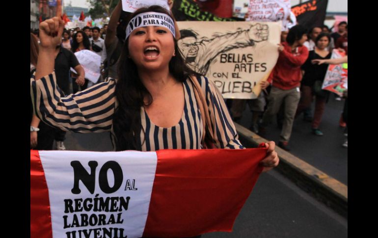 Internacional | La legislación incorporaría al mercado a personas sin calificación ni estudios Ley laboral para jóvenes dispara protestas en Perú La legislación incorporaría al mercado a personas sin calificación ni estudios Por: AFP 24 de diciembre de 2014 - 09:55 hs LIMA, PERÚ (24/DIC/2014).- El gobierno del presidente Ollanta Humala enfrenta las mayores movilizaciones en su contra en 41 meses de gestión, en rechazo a una flamante ley laboral cuya derogatoria reclaman miles de jóvenes indignados, que marcharon el lunes por segunda vez en cinco días en todo el país. Las protestas, que no cuentan con líderes, han dejado al gobierno solo en defensa de la nueva ley cuya modificatoria o derogatoria reclaman en el Congreso una mayoría de partidos, que quieren arrancar 2015 con buen pie, de cara a la campaña electoral que arranca en octubre entrante. El presidente Humala, cuya popularidad subió cinco puntos porcentuales en diciembre y se ubicó en 30 por ciento según los sondeos, volvió a defender la ley este martes tras sostener que no cederá a las presiones de la calle impulsadas por jóvenes que considera manipulados por políticos con ambiciones presidenciales. ''Le pido a los jóvenes que lean la ley, que se enteren y no se dejen llevar por cuatro o cinco políticos que tienen una postura ideológica y que nunca van a cambiar'', fustigó Humala, un ex comandante del ejército de 52 años, durante una ceremonia escolar. Según Humala, la ley busca incorporar al mercado laboral a medio millón de jóvenes sin calificación y con estudios escolares incompletos a los que se pretende rescatar de la informalidad laboral y de la delincuencia. ''La ley es una oportunidad para los que no tienen nada. Los que tienen algo, qué bien; hay que protegerlos, asegurar que no los sobreexploten'', recalcó el presidente. El nuevo régimen laboral juvenil busca insertar en el mercado laboral a la población con más índice de desempleo que va desde los 18 a 24 años. La norma sin embargo recorta beneficios sociales como gratificación, utilidades, además de reducir de 30 a 15 días las vacaciones, entre otros. ''Formalizar un régimen de empleo para jóvenes con menores derechos. De eso trata la nueva ley. Esto es lo que ha generado la reacción que vemos en las calles'', asegura el abogado Javier Mujica, un experto en derecho laboral y asesor de sindicatos en Perú. Según Mujica, ''el nuevo régimen laboral parece beneficiar a grandes empresas pues produce un subsidio desde los trabajadores a los márgenes de utilidad del empresario. Todo esto ha suscitado el rechazo de los jóvenes''. La ley se aprobó en momentos que Perú enfrenta una fuerte desaceleración de su economía, que se estima crecerá menos de tres por ciento, contra cinco por ciento desde hace un lustro. Temas América Latina Manifestaciones en el mundo Perú Recibe las últimas noticias en tu e-mail Todo lo que necesitas saber para comenzar tu día Registrarse implica aceptar los Términos y Condiciones