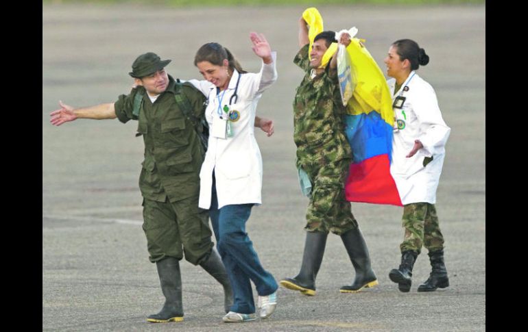 Internacional | Las FARC cumplen Liberan a 10 uniformados Se reencuentran con sus seres queridos después de 13 años de estar cautivos Por: EL INFORMADOR 3 de abril de 2012 - 02:40 hs BOGOTÁ, COLOMBIA (03/DIC/2012).- Personal médico acompaña a dos de los 10 uniformados que disfrutan el aire de la libertad. Las Fuerzas Armadas Revolucionarias de Colombia (FARC) liberaron a los últimos 10 policías y militares que tenían secuestrados, en una jornada de gran emoción por el reencuentro de estos hombres con sus familias después de más de 13 años cautivos, liberación que al presidente de Colombia, Juan Manuel Santos, le pareció insuficiente. Tras meses de preparativos, el Comité Internacional de la Cruz Roja (CICR) y la mediación del colectivo Colombianas y Colombianos por la Paz (CCP), liderado por la ex senadora Piedad Córdoba, concluye la misión. Temas América Latina FARC Colombia Lee También Palabras de Trump, “groseras e ignorantes con Colombia”: Gustavo Petro Lugar de Sudamérica prohíbe Halloween por usar símbolos vinculados a la muerte Equipos que podrían quedar eliminados del Play In en la jornada doble de la Liga MX ¿Dónde ver EN VIVO el partido de J14 América vs Puebla? Recibe las últimas noticias en tu e-mail Todo lo que necesitas saber para comenzar tu día Registrarse implica aceptar los Términos y Condiciones