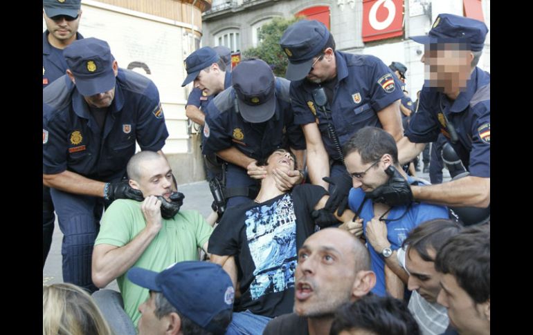 Internacional | El Papa visitará España Limpian el Centro de Madrid de ''indignados'' La Policía retira los últimos campamentos establecidos en mayo pasado de la emblemática plaza de la Puerta del Sol Por: EL INFORMADOR 3 de agosto de 2011 - 02:48 hs MADRID, ESPAÑA (03/AGO/2011).- Los dos últimos campamentos de “indignados” del movimiento 15 de mayo (15-M), situados en la céntrica Puerta del Sol de Madrid , fueron desalojados el martes por la mañana por la Policía española sin que se produjeran mayores incidentes. La evacuación fue tomada como una “limpia” ante la visita del Papa a Madrid, prevista del 18 al 21 de agosto. “Han destruido el punto de información (del campamento), tiendas y todo. Han puesto todo en la basura después de que habíamos decidido dejar sólo el punto de información” en la Puerta del Sol, explicó Juan Plaza, de 39 años, miembro del movimiento desde sus comienzos. “La única razón es que viene el Papa. Quieren que todo esté limpio”, acusa Jorge Gaínza, asistente social. Ante la “limpia”, la plataforma de “indignados” convocó a dar “un paseo” en contra del desalojo a las 20:00 horas locales, por lo que los agentes policíacos montaron fuertes controles en todas las calles que acceden a la Puerta del Sol para impedir la protesta. Las autoridades impidieron el acceso a la céntrica plaza de Madrid a más de mil simpatizantes del movimiento. “Esta es nuestra plaza”, “menos Policía, más democracia”, “el pueblo unido jamás será vencido” y “únete, únete, tienes hipoteca también”, coreaban los manifestantes. Las medidas de control se establecieron horas antes de que comenzara el “paseo” de protesta tras el desalojo, que se produjo en apenas dos horas y “sin incidentes”. Participaron 300 agentes antidisturbios y municipales, seguidos de una legión de barrenderos y operaciones del servicio municipal. La decisión de desalojar a los últimos acampados la tomó ayer “de manera conjunta” el Ayuntamiento madrileño y el Ministerio del Interior, informa el diario El País. El campamento ahora retirado se instaló en esta emblemática plaza madrileña a mediados de mayo, por simpatizantes del movimiento, que durante semanas protestaron también en varias ciudades españolas y europeas contra las duras medidas económicas tomadas contra la crisis y contra los defectos de la democracia. CLAVESEl caos 1 El desalojo de los restos del campamento del movimiento 15-M, en la Puerta del Sol de Madrid, revivió las movilizaciones de los “indignados “ en la capital de España. 2 La noche en Madrid se vio marcada por protestas en el centro de la capital española, donde unas cinco mil personas (de acuerdo con el diario El País) pusieron en jaque las medidas de control de las fuerzas de seguridad. 3 La delegación del Gobierno en Madrid tomó la decisión de bloquear los accesos a la emblemática plaza madrileña y “blindarla”. Incluso cerraron la estación de metro y cercanías de Sol. FICHA TÉCNICAEl movimiento Inició con la protesta pacífica “Democracia Real Ya”, el 15 mayo (15-M) pasado, que convocó a los españoles en cincuenta ciudades para demostrar que no son “mercancías en manos de políticos y banqueros”. La protesta finalizó con altercados y 24 detenidos —cinco de ellos menores de edad —. Esa noche, unas 30 personas acamparon en la Puerta del Sol para reclamar un cambio político y social. Durante casi un mes siguieron las protestas. El 11 de junio los “indignados” dejaron claro a los alcaldes que tomaban su cargo que a ellos “no les representan”. En junio, los acampados de la Puerta del Sol instalados desde mediados de mayo, recogen y limpian el campamento, apoyados por servicios de limpieza, pero se queda en la plaza un punto de información permanente del movimiento. Temas Europa España Manifestaciones en el mundo Lee También Sociales: El Informador inicia una nueva etapa con la moderna imprenta "Doña Stella" España consigue su boleto a los cuartos de final del Mundial Sub-20 Derrumbe de edificio en Madrid deja cuatro desaparecidos y tres heridos Lo peor es que Claudia también tiene sus dudas Recibe las últimas noticias en tu e-mail Todo lo que necesitas saber para comenzar tu día Registrarse implica aceptar los Términos y Condiciones