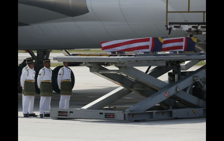 Internacional | Decretan un día de luto nacional por la llegada de los restos Llega a Malasia avión con cuerpos de víctimas del vuelo MH17 Decretan un día de luto nacional por la llegada de los restos Por: AFP 21 de agosto de 2014 - 21:58 hs KUALA LUMPUR, MALASIA (21/AGO/2014).- Un avion con los 20 primeros cuerpos de víctimas malasias del avión de Malaysia Airlines derribado en Ucrania llegó este viernes a Kuala Lumpur procedente de Amsterdam. El avión fletado especialmente por Malaysia Airlines aterrizó poco antes de las 10:00 hora local (21:00 hora de México). Un día de luto nacional fue decretado este viernes. El viceprimer ministro, Muhyiddin Yassin, anunció la semana pasada que los féretros serían recibidos por el rey de Malasia, el primer ministro y otras autoridades. El avión que cubría el vuelo MH17 Amsterdam-Kuala Lumpur fue derribado el 17 de julio cuando sobrevolaba el este de Ucrania, una zona de combates entre el ejército regular ucraniano y los insurgentes prorrusos. Los 298 ocupantes del avión perecieron, entre ellos 193 holandeses y 43 malasios, incluidos los 15 miembros de la tripulación. Después de la catástrofe, más de 220 féretros con restos de las víctimas fueron transportados a Holanda para proceder a su identificación. Temas Asia Desapariciones y caídas de aviones Malasia Lee También Jalisco reporta una tendencia a la baja en desapariciones Gobierno federal refuerza combate a extorsión y desapariciones Desaparecidos, la prioridad del gasto Hallan más bolsas con restos humanos en colonia Arroyo Hondo Recibe las últimas noticias en tu e-mail Todo lo que necesitas saber para comenzar tu día Registrarse implica aceptar los Términos y Condiciones