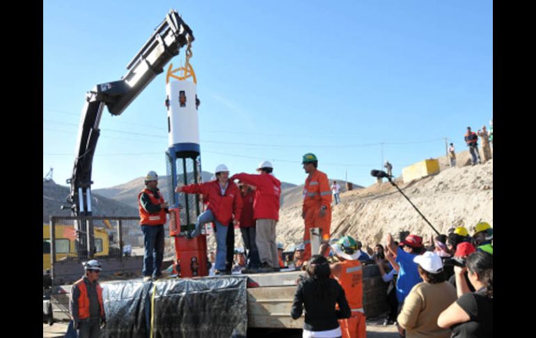 Internacional | Están atrapados desde el 5 de agosto Llegó a mina San José una de las jaulas para rescate de mineros El salvamento final está previsto para inicios de noviembre, según informes de los encargados Por: AFP 25 de septiembre de 2010 - 15:56 hs Autoridades examinan el dispositivo de rescate. AFP / MINA SAN JOSÉ, CHILE (25/SEP72010).- Una de las tres jaulas que se usarán para izar uno a uno a la superficie a los 33 mineros atrapados a 700 metros de profundidad cuando se lleve a cabo su rescate, llegó este sábado a la mina San José, en medio de la euforia de familiares de los trabajadores. La jaula metálica, que el gobierno mandó a construir a Astilleros y Maestranzas de la Armada (marina) chilena (Asmar), llegó a las 15:43 locales (19:30 GMT), sobre un camión escoltado por la Policía y cubierta por una lona. La cápsula fue recibida por los familiares de los mineros que aguardan en la superficie con el tradicional grito: "Chi, Chi, Chi, le, le, le, viva Chile". "Estoy feliz, feliz, porque ya estamos esperando 50 días, sabemos que esto es lo que esperamos", dijo Elizabeth Segovia, hermana de Darío, uno de los que está atrapado en la mina San José, a 800 km al norte de Santiago. La estructura escogida -en cuyo interior serán colocados cada uno de los mineros- tiene una largo máximo de 2.5 metros, mientras que el peso aproximado, sin carga, es de 250 kilos, según un documento entregado la semana pasada por la constructora Asmar. Un sistema complejo de grúas y poleas jalarán a los mineros desde la profundidad de la tierra hasta la superficie, por un túnel de 66 a 70 centímetros de diámetro. Para tal efecto tres perforadoras trabajan por separado y en paralelo, en perforaciones que avanzaban sin inconvenientes este sábado, según las autoridades. El rescate final de los mineros -atrapados desde el 5 de agosto- se realizaría a inicios de noviembre, según reafirmó este sábado el ministro de Minería Laurence Golborne. Temas América Latina Chile Mineros Lee También Hay mejoría, pero el futuro es “incierto” Chivas y América empatan en partido amistoso 'Chicharito' marca su primer gol al América en partido amistoso México vs Argentina: ¿Quién ganará el partido según la IA? Recibe las últimas noticias en tu e-mail Todo lo que necesitas saber para comenzar tu día Registrarse implica aceptar los Términos y Condiciones