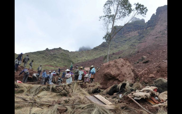 Internacional | Autoridades informan que hay por lo menos nueve personas desaparecidas Lodo sepulta a pequeña aldea en Bolivia y mata a cuatro Autoridades informan que hay por lo menos nueve personas desaparecidas Por: AP 9 de febrero de 2014 - 19:51 hs Habitantes de la aldea buscan entre el lodo a posibles sobrevivientes. AP / LA PAZ, BOLIVIA (09/FEB/2014).- Fuertes lluvias que caen en gran parte de Bolivia provocaron una avalancha de lodo que sepultó a una pequeña aldea en el centro del país y dejó cuatro muertos y nueve desaparecidos, se informó el domingo. El deslizamiento de lodo ocurrido el sábado en la noche sepultó las casas de 15 familias de la comunidad quechua de Chuypakasa, en el municipio de Morochota, dijo el domingo por teléfono la edil Jimena Alegre. Chuypakasa está enclavada en un cerro, gran parte del cual se ha desprendido, dijo Alegre. Brigadas de rescate de la gobernación de Cochabamba, a 220 kilómetros al este de La Paz, buscaban sobrevivientes el domingo. Hace dos semanas, otra avalancha de lodo dejó 10 muertos en la población de Rurrenabaque en el norte de La Paz. Desde noviembre las fuertes lluvias han dejado más de 36 fallecidos y 46 mil familias afectadas. El gobierno declaró emergencia nacional. El servicio de meteorología informó que las lluvias continuarán hasta finales de febrero. Temas América Latina Bolivia Muertes Tormentas Recibe las últimas noticias en tu e-mail Todo lo que necesitas saber para comenzar tu día Registrarse implica aceptar los Términos y Condiciones