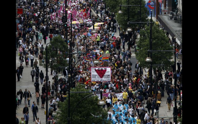 Internacional | El festejo se complicó por las exigencias de las autoridades municipales Londres celebra el orgullo gay mundial pese a trabas El desfile se vio marcado por la prohibición del ayuntamiento londinense a usar carrozas o vehículos, además de limitar las horas de la marcha, Por: EFE 7 de julio de 2012 - 15:11 hs La marcha por el Orgullo Gay de hoy en Gran Bretaña contó con una nutrida asistencia. EFE / LONDRES, GRAN BRETAÑA (07/JUL/2012).- Miles de personas participaron hoy en las celebraciones del día del orgullo gay en Londres, que este año se han visto teñidas por el enfrentamiento de los organizadores con el ayuntamiento que a última hora limitó la dimensión de los eventos. A pesar de que este año la capital acoge la convocatoria mundial de las celebraciones, las autoridades municipales prohibieron la utilización de carrozas en el desfile y adelantaron y limitaron las horas de las celebraciones. Los organizadores intentaron negociar hasta el último momento, pero el desfile que recorrió las calles de Londres comenzó a las 10:00 horas, dos antes de los previsto, y las celebraciones tendrán que acabar a las 17.00 horas. El ayuntamiento prohibió además que la marcha en la que participaron miles de personas se utilizaran carrozas o vehículos, lo que según la organización del World Pride ha deslucido la celebración e impedido la participación de personas discapacitadas. A pesar de ello y de la lluvia que cayó sobre Londres a primera hora de la mañana, la asistencia a unas celebraciones dominadas por un ambiente de fiesta resultó masiva. Entre las personas de todas las edades que recorrieron las principales calles de Londres, en grupo o de manera individual, con pancartas o disfrazados, se encontraban numerosos miembros homosexuales del ejército y de la policía que desfilaron con sus uniformes. Entre los asistentes se pudieron además ver agrupaciones de transexuales, miembros de gimnasios gays, asociaciones de solidaridad con Palestina, sindicatos e incluso el personal de la aerolínea British Airways. A tratarse de una convocatoria mundial, los organizadores han querido este año centrar el foco en reivindicar la situación de los países en los que la homosexualidad está perseguida. Un panorama que contrasta con los avances que está experimentando el Reino Unido, donde este año el Gobierno ha anunciado su intención de legalizar el matrimonio gay antes de 2014. Además, el viceprimer ministro británico, Nick Clegg sorprendió ayer al colocar en el edificio que acoge las oficinas gubernamentales la bandera del arco iris, que representa a la comunidad homosexual, para sumarse así a las celebraciones del World Pride. El líder liberaldemócrata dijo ayer después de que por primera vez una bandera gay ondeara en una edificio gubernamental, que se trata de una "nueva era de orgullo". Además, Clegg hizo un llamamiento a las diferentes jerarquías religiosas para que permitan la celebración de matrimonios entre personas del mismo sexo en sus templos. Temas Europa Manifestaciones en el mundo Londres Homosexualidad Recibe las últimas noticias en tu e-mail Todo lo que necesitas saber para comenzar tu día Registrarse implica aceptar los Términos y Condiciones