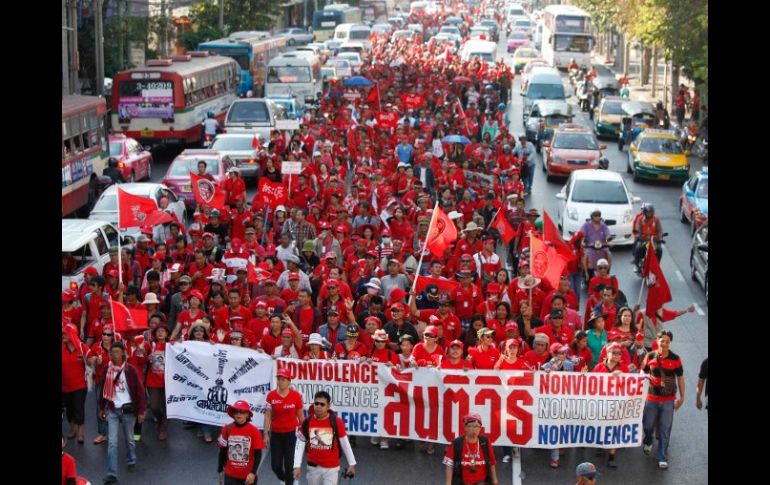 Internacional | Al menos 10 mil partidarios del frente antigubernamental participaron de la marcha Los 'camisas rojas' acosan al gobierno tailandés con una nueva manifestación Al menos 10 mil personas participaron de la marcha; anuncian que las movilizaciones seguirán mientras el primer ministro continúe en el poder Por: EFE 9 de enero de 2011 - 08:58 hs Al menos 10 mil partidarios del frente antigubernamental, marcharon por las calles del centro de Bangkok. REUTERS / BANGKOK, TAILANDIA (09/ENE/2011).- Al menos 10 mil partidarios del frente antigubernamental, conocidos por "camisas rojas", marcharon hoy por las calles del centro de Bangkok para continuar con su estrategia de acoso al gobierno de Tailandia. La marcha, convocada por el Frente Unido para la Democracia y contra la Dictadura, transcurrió por el mismo corazón comercial de la capital en el que sus seguidores se atrincheraron durante abril y mayo del año pasado. Los líderes de la plataforma antigubernamental indicaron por medio de un comunicado, que continuarán con su planes de celebrar cada mes dos manifestaciones en Bangkok mientras el primer ministro, Abhisit Vejjajiva y su Gobierno continúen el poder. La Policía desplegó medio millar de agentes de las brigadas antidisturbios con la finalidad de prevenir brotes de violencia durante la protesta, primera de 2011. Las protestas y enfrentamientos librados el pasado año entre los "camisas rojas" y las fuerzas de seguridad, arrojaron 91 muertos y mil 800 heridos. La marcha de los "camisas rojas" tuvo lugar unas horas después de que el primer ministro anunciara en un discurso televisado, una batería de medidas destinadas a reducir el desequilibrio social, en un aparente intento de mejorar la imagen del gobierno antes de las elecciones previstas para este año. Vejjajiva, quien sopesa disolver el Parlamento y convocar comicios a mediados de año, dijo que las nuevas medidas persiguen beneficiar a los tailandeses con menor poder adquisitivo y a los trabajadores autónomos, como taxistas y vendedores ambulantes. Por su parte, el portavoz del Partido Demócrata, Buranaj Smutharaks, señaló que las iniciativas destinadas a reducir el desequilibrio social serán la espina dorsal del programa que la formación presentará durante la campaña electoral. Tras los disturbios ocurridos en Bangkok el pasado año a raíz de las protestas callejeras de los seguidores del Frente, Vejjajiva se comprometió a adoptar medidas para reducir la desigual distribución de la riqueza. Los "camisas rojas", que continúan con las manifestaciones aunque con cariz pacífico, claman que su movilización es el resultado de la desatención al medio rural y consideran que el actual Gobierno es ilegítimo porque llegó al poder por medio de pactos parlamentarios con diputados tránsfugas. Temas Asia Manifestaciones en el mundo Tailandia Recibe las últimas noticias en tu e-mail Todo lo que necesitas saber para comenzar tu día Registrarse implica aceptar los Términos y Condiciones