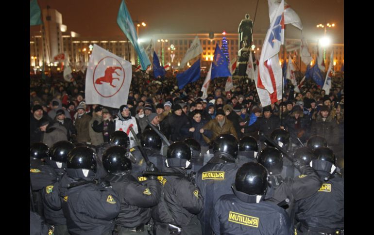 Internacional | La policía se enfrenta con manifestantes durante una protesta Lukashenko, tres años más en Bielorrusia La policía se enfrenta con manifestantes durante una protesta Por: EFE 20 de diciembre de 2010 - 02:42 hs La Policía se enfrenta a los manifestantes en el Centro de Minsk, durante una protesta, por lo que consideran fraude electoral. EFE / MOSCÚ, RUSIA (20/DIC/2010).- Alexandr Lukashenko, primer y único presidente de Bielorrusia durante 16 años, seguirá en el poder tras los comicios presidenciales de este domingo, en que miembros de la oposición fueron golpeados durante protestas la calle, incluido el candidato Vladímir Nekliáev, quien resultó gravemente herido. Encuestas y resultados parciales dan por ganador a Lukashenko, de 56 años, que obtuvo entre 72% y 89 por ciento. Mientras cerraban los colegios, uno de los nueve candidatos que desafiaron a Lukashenko, Vladímir Nekliáev, fue agredido por la policía y sufre una lesión cerebral por lo que tuvo que ser hospitalizado. La televisión rusa mostró como Nekliáev y varias decenas de acompañantes fueron bloqueados y detenidos por la Policía, luego sonaron estruendosas explosiones y hombres vestidos de negro arremetieron contra ellos a porrazos, tirando a todos al suelo con la cara hundida en la nieve. A diferencia de anteriores comicios, esta vez Lukashenko se esforzó bastante por mantener las apariencias y hasta permitió a sus nueve rivales aparecer en la televisión. Pero ya el jueves su paciencia se agotó, y el “batka” (“padre”) descargó sus iras contra los observadores internacionales. “Quiero que me oigan los presidentes de las comisiones electorales y no permitan a nadie fotografiar, sellar, firmar, afirmar. (...) Sus decisiones serán apoyadas por la fuerza”. Justo para entonces, en el segundo día de la votación preliminar que la oposición considera como principal instrumento de fraude y en la cual, según datos oficiales, emitió su voto mas de 23% del electorado. Temas Europa Manifestaciones en el mundo Bielorrusia Recibe las últimas noticias en tu e-mail Todo lo que necesitas saber para comenzar tu día Registrarse implica aceptar los Términos y Condiciones
