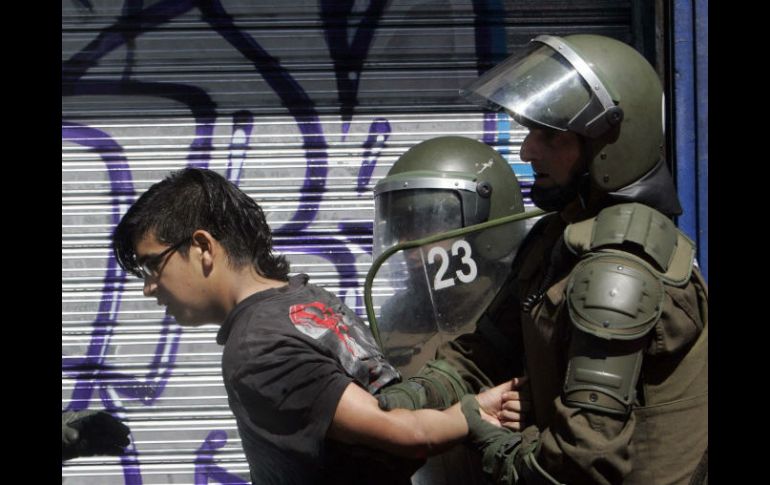 Internacional | Estudiantes intentaron bloquear la avenida Alameda de la capital chilena Manifestación produce detenidos en Universidad de Santiago La policía ingresó a la universidad tras destrozos de estudiantes que piden cambios al sistema educativo Por: AFP 2 de febrero de 2012 - 16:58 hs Estudiantes inconformes son detenidos tras exigir cambios al sistema educativo. REUTERS / SANTIAGO DE CHILE (02/FEB/2012).- La policía chilena detuvo a este jueves a 32 personas en medio de disturbios ocurridos en la Universidad de Santiago, lugar donde en 2011 se produjeron manifestaciones de estudiantes que exigieron al gobierno chileno una educación pública gratuita y de calidad. "Los disturbios dejaron 32 detenidos. Unas 50 personas se enfrentaron a carabineros (policía uniformada) en la Universidad de Santiago", dijo una fuente policial que pidió mantener su identidad en reserva. Los incidentes comenzaron en la mañana de este jueves cuando manifestantes encapuchados intentaron bloquear la emblemática avenida Alameda de la capital chilena, siendo repelidos por la policía con el uso de camiones lanza-agua y agentes químicos. Los encapuchados escaparon de la policía e ingresaron a la Universidad de Santiago, en el poniente de la capital chilena, y desde ahí lanzaron bombas incendiarias, sillas y piedras a los uniformados.. La policía ingresó a la universidad, con el permiso del rector Juan Manuel Zolezzi, luego que los manifestantes causaron heridas leves a un funcionario y destrozos en el mobiliario. "Teníamos disturbios que estaban provocando daños a la propiedad de la universidad, se quebraron puertas de oficinas de recursos humanos, se agredió a un guardia y estaba empezando a comprometerse mobiliario", declaró Zolezzi a radio Cooperativa. El rector justificó el ingreso de la policía porque los manifestantes era "gente que no es de la universidad". La Universidad de Santiago fue el punto de partida de algunas de las más de 40 marchas que por más de seis meses realizaron estudiantes universitarios y secundarios durante el 2011. Los estudiantes exigieron cambios al sistema educativo chileno, heredado de la dictadura militar (1973-1990) que redujo a menos de la mitad el aporte público a la educación e impulsó el ingreso de los privados. Temas América Latina Chile Recibe las últimas noticias en tu e-mail Todo lo que necesitas saber para comenzar tu día Registrarse implica aceptar los Términos y Condiciones