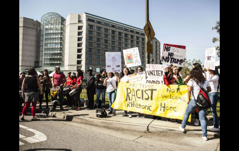 Internacional | Agentes forman una cadena humana en el hotel de Burlingame para impedirles el acceso Manifestantes contra Trump lanzan huevos a policías Decenas de agentes forman una cadena humana en el hotel de Burlingame para impedirles el acceso Por: AP 29 de abril de 2016 - 15:50 hs Diversas organizaciones pro inmigrantes impedían el acceso al evento que se lleva a cabo en Burlingame, California. AFP / R. Talaie CALIFORNIA, ESTADOS UNIDOS (29/ABR/2016).- Decenas de manifestantes se abrieron paso por las barricadas que rodean al hotel de California donde Donald Trump pronunció un discurso ante la convención estatal del Partido Republicano. Los inconformes también lanzaron huevos contra la policía mientras gritaban lemas contra Trump. Decenas de agentes formaron una cadena humana entre la entrada del hotel y la entrada del estacionamiento. Los agentes cerraron el paso y portaron equipo antidisturbios en un intento de mantener alejados a los manifestantes. Los manifestantes también atacaron a los periodistas, a quienes les reclamaron no tomar fotografías. La muchedumbre gritó "Fuck Donald Trump", mientras portaba pancartas con la leyenda "El miedo y el odio no son presidenciales". Un seguidor de Trump que se confrontó a la multitud estuvo a punto de ser linchado, pero las fuerzas de seguridad lo rescataron a tiempo. A fin de evitar a los manifestantes, el aspirante presidencial republicano tuvo que llegar a pie y por la puerta trasera de un hotel en Burlingame. Diversas organizaciones pro inmigrantes, entre ellas ANSWER, impedían el acceso al evento argumentando que no iban a permitir que ingresara nadie que promueva el odio y el racismo en Estados Unidos. Cuando llegó una caravana de varios vehículos escoltando la camioneta en donde llegó Trump, se decidió bajar al aspirante a la nominación republicana en parte trasera del hotel, por lo que tuvo que caminar bastante para entrar por la puerta de atrás. Cuando los manifestantes se dieron cuenta de la forma como ingresó Trump intentaron entrar a la fuerza al centro para boicotear la participación del magnate inmobiliario, lo que les fue impedido por la seguridad del sitio y lo que generó un tenso momento con la policía. "No ha sido la entrada más fácil (...) Ha sido como cruzar la frontera" entre Estados Unidos y México, dijo al comenzar su discurso, una provocación dirigida a los latinos que ondeaban banderas mexicanas fuera. Con información de NTX y AFP Temas Norte América Estados Unidos Manifestaciones en el mundo Republicanos Donald Trump Lee También Chivas viaja con ‘Chicharito’ y Robinho al amistoso ante América en Estados Unidos El Plan de Paz para Gaza no es la paz, pero es un camino para lograrla: especialista Estas son las bajas de Chivas para el próximo Clásico Nacional Chivas y América calientan en redes el Clásico Nacional de la Fecha FIFA Recibe las últimas noticias en tu e-mail Todo lo que necesitas saber para comenzar tu día Registrarse implica aceptar los Términos y Condiciones