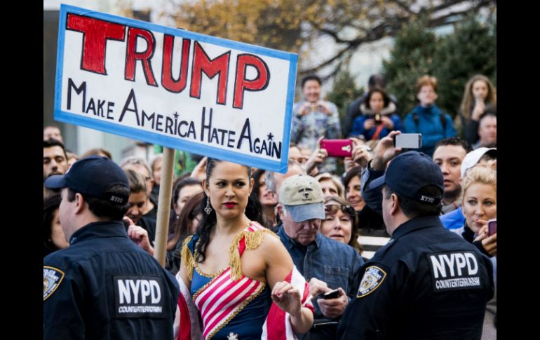 Internacional | Protestantes coreaban que el magnate trata de derribarlos con sus ataques y críticas Manifestantes interrumpen discurso de Trump en NY Una decena de protestantes coreaban que el magnate trata de derribarlos con sus ataques y críticas Por: AP 11 de diciembre de 2015 - 18:34 hs NUEVA YORK, ESTADOS UNIDOS (11/DIC/2015).- Una decena de manifestantes interrumpieron el discurso del precandidato presidencial republicano Donald Trump el viernes en un almuerzo de mil dólares el boleto en la ciudad de Nueva York, para criticar la reciente retórica antimusulmana del multimillonario mientras personal de seguridad echaba a algunos del evento. Cuatro manifestantes que coreaban "Trump está tratando de derribarnos, atacando a negros y morenos" trataron de irrumpir por una entrada lateral durante el discurso del magnate en el Hotel Plaza de Manhattan, al tiempo que personal de seguridad los empujaba para sacarlos. Los manifestantes estaban afiliados con varios grupos árabe-estadounidenses y musulmanes-estadounidenses, además de grupos de activistas por la igualdad racial. Uno de los manifestantes, Jorge González, se cayó por unas escaleras luego que un guardia de seguridad del hotel lo empujó. Dijo que no sufrió heridas. Otro fue lanzado al suelo en el vestíbulo del hotel. Dos reporteros, Jake Pearson y Warren Levinson, también fueron sacados a la fuerza del vestíbulo. El evento, patrocinado por el Commonwealth Club, un grupo republicano de Pennsylvania, estuvo cerrado a la prensa. Trump, que encabeza la mayoría de los sondeos de preferencias en la contienda republicana, causó una ola de críticas en el mundo con su reciente llamado a prohibir el ingreso de todos los musulmanes a Estados Unidos. Más tarde durante su discurso, nueve manifestantes de varios grupos de activistas se pusieron de pie para criticar sus recientes comentarios. "Realmente me asusta ese tipo de retórica", dijo Martha Acklesberg, de 69 años, integrante del grupo Judíos por Justicia Racial y Económica, quien junto con Judith Plaskow, de 68 años, pagó para ver el discurso de Trump y entonces lo interrumpió. Trump, dijo Acklesberg, suspendió brevemente su discurso y dijo: "Cuando eres el favorito, recibes mucha atención". Temas Norte América Estados Unidos Racismo Donald Trump Lee También México y Estados Unidos refuerzan cooperación en seguridad fronteriza ¿Tormenta "Sonia" afectará a Jalisco en los próximos días? NYT revela que Trump autorizó a la CIA realizar operaciones en Venezuela EU afirma que el desenlace de la guerra en Ucrania recaerá en Trump Recibe las últimas noticias en tu e-mail Todo lo que necesitas saber para comenzar tu día Registrarse implica aceptar los Términos y Condiciones