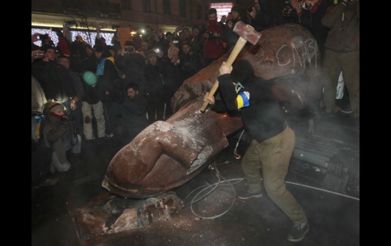 Internacional | Protestan contra el rechazo del gobierno de un pacto con la UE Manifestantes ucranianos derriban estatua de Lenin Manifestantes ucranianos como protesta derribaron una estatua de Lenin Por: AFP 8 de diciembre de 2013 - 13:44 hs KIEV, UCRANIA (08/DIC/2013).- Manifestantes ucranianos que protestaban contra el rechazo del gobierno de un pacto con la Unión Europea (UE) derribaron el domingo una estatua de Lenin en la plaza central de Kiev, indicó la policía. Una treintena de personas con los rostros cubiertos rodearon la estatua con una cuerda a la altura del cuello, y ataron esta a unos árboles cercanos para derribarla, al grito de "¡Al suelo, miseria comunista!", constató un fotógrafo. "Manifestantes enmascarados derribaron la estatua de Lenin", dijo una vocero policial, indicando que los manifestantes ondearon banderas del nacionalista Partido de la Libertad. La movilización proeuropea congregó este domingo a cientos de miles de personas en las calles de Kiev. Lenin es una figura detestada por los nacionalistas ucranianos, que ven en ella un símbolo de la sumisión de su país a Moscú durante la época de la Unión Soviética. Los manifestantes proeuropeos acusan a Rusia de haber presionado a Ucrania para que no firmara un acuerdo de asociación con la UE. La estatua derribada, de 3.5 metros de altura y realizada en cuarcita, se erigió en 1946 y actualmente sirve de punto de reunión en la capital para los comunistas ucranianos. "Ahorquen a los comunistas", gritaban algunos manifestantes. Dos diputados del nacionalista Partido de la Libertad estaban presentes cuando la escena fue derribada, según la fuente policial. Más tarde, el líder del opositor partido Svoboda, Oleg Tyagnybok, dijo en tono jocoso sobre el derrumbamiento de la estatua: "¡fue un sucidio desagradable". Los manifestantes desplegaron las banderas ucraniana y la rojo y negro del ejército insurgente ucraniano (anticomunista) sobre el el pedestal vacío, al tiempo que unos mil 500 manifestantes aún presentes coreaban "¡Gracias a Dios!" y "la última". La policía, por su parte, inició una investigación sobre "disturbios masivos" tras el derribo del monumento. Desde temprano, los manifestantes habían levantado barricadas de metro y medio de altura en las cercanías de la sede del gobierno, con la intención de impedir que los ministros acudan a sus oficinas en coche. La ex primer ministra Yulia Tymoshenko, actualmente encarcelada, pidió a través de una declaración que fue leída por su hija la renuncia inmediata del presidente Yanukovich. "El ya no es el presidente de nuestro país, es un tirano que debe responder por cada gota de sangre que ha sido derramada", dijo Yevgenia Tymoshenko desde una especie de plataforma, sentada junto a un enorme retaro de su madre. Tras los discursos de los manifestantes, los servicios de seguridad (SBU) anunciaron una investigación sobre presuntos intentos de los políticos opositores para tomar el poder. La policía indicó que en total unas 100 mil personas salieron a protestar en las calles de Kiev, mientras que los periodistas presentes reportaban cifras mucho mayores. Temas Europa Internacional Manifestaciones en el mundo Unión Europea Ucrania Lee También “El diablo fuma”, una dura mirada al abandono infantil en el país María Fernanda Prieto da el paso natural en el cine Futbol hoy 14 de octubre de 2025: ¿Dónde ver los partidos en vivo? Drama en la frontera con “La Gloria” Recibe las últimas noticias en tu e-mail Todo lo que necesitas saber para comenzar tu día Registrarse implica aceptar los Términos y Condiciones