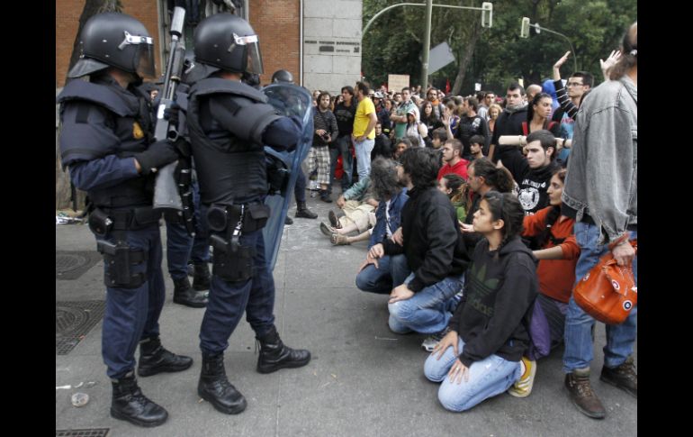 Internacional | Algunos de los protestantes resultaron con heridas y contusiones Manifestantes y policía se enfrentan en España Alrededor de cinco participantes de la movilización 'Ocupa el Congreso' son arrestados Por: NTX 25 de septiembre de 2012 - 13:45 hs Los enfrentamientos ocurrieron cuando manifestantes intentaron cruzar la plaza al lado del Congreso de los Diputados. EFE / MADRID, ESPAÑA (25/SEP/2012).- La policía española se enfrentó contra cientos de manifestantes que intentaban llegar al parlamento, en la llamada movilización "Ocupa el Congreso", lo que dejó unas cinco personas detenidas y heridos por contusiones. La manifestación integrada por personas llegadas de diferentes puntos de España pide la renuncia de los diputados, del gobierno y la convocatoria de un proceso Constituyente, por lo que el gobierno desautorizó la concentración en los alrededores del parlamento. Las movilizaciones fueron convocadas por diversos grupos, algunos identificados como 25 de Septiembre (25-S), a través de las redes sociales. Los enfrentamientos se dieron cuando algunos manifestantes intentaron cruzar las vallas en la plaza de Neptuno, al lado de la sede del Congreso de los Diputados. Los choques también se comenzaron a dar en la calle Cervantes, cuando otro grupo de manifestantes intentó cruzar el cordón policial, y fueron impedidos por antimotines, a los que lanzaron botellas y otros objetos. Los primeros reportes refieren que hay unas cinco personas detenidas por atacar a los policías en esos enfrentamientos y unas seis personas fueron llevadas a recibir atención médica debido a los golpes recibidos. En tanto, en el interior del Congreso se celebra la sesión programada para este día y sólo por un momento su presidente, Jesús Posada, salió a la puerta a verificar la situación y hablar con agentes policiales que resguardan la sede. El dirigente de la coalición Izquierda Unida (IU), Cayo Lara, salió y fue hasta donde estaban los manifestantes en la plaza de Neptuno y se sumó a la concentración, gesto que fue recibido con aplausos. La policía española dispuso de un dispositivo de unos mil 300 agentes, tanto para resguardar el Congreso y sus alrededores, como para establecer puntos de control en los alrededores a la calle Carrera de San Jerónimo. Temas Europa España Manifestaciones en el mundo Lee También Transportistas de la FAT anuncian bloqueo para esta fecha en CDMX Horarios y afectaciones viales por marchas de HOY en CDMX Marchas HOY CDMX: afectaciones viales, de este 20 de octubre Jugadores de LaLiga se manifiestan contra el partido en Miami Recibe las últimas noticias en tu e-mail Todo lo que necesitas saber para comenzar tu día Registrarse implica aceptar los Términos y Condiciones