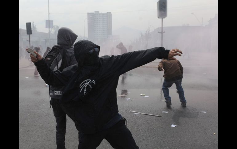 Internacional | Manifestantes incendian vehículos Marcha conmemorativa del golpe militar culmina con 20 detenidos Al término de su movimiento, arremeten contra los periodistas que cubrían el evento destrozando sus equipos Por: EFE 12 de septiembre de 2010 - 04:38 hs Un manifestante arroja una piedra contra vehículos de la Policía durante la marcha en memoria de las víctimas dictadura militar. AFP / SANTIAGO DE CHILE (12/SEP/2010).- Una veintena de personas fueron detenidas en el Cementerio General de Santiago de Chile, donde un grupo de encapuchados agredió a periodistas y causó destrozos al término de una marcha conmemorativa de los 37 años del golpe militar de 1973, informaron fuentes policiales. Los veinte detenidos quedaron a disposición de la Fiscalía Centro Norte, de la capital chilena, dijo a los periodistas el general de Carabineros José Luis Ortega Hernández, quien explicó que de esas 20 personas, 15 fueron retenidas por desórdenes. Otras tres personas fueron detenidas antes de iniciarse la marcha, al ser sorprendidas con ocho botellas que contenían productos químicos, ácidos, “para fabricar artefactos incendiarios y bombas de expansión rápida”. Mientras que los dos restantes son jóvenes que no portaban documentos de identificación. Los incidentes ocurrieron al término de la marcha, cuando los organizadores habían invitado a los asistentes a regresar a sus hogares y unos 200 encapuchados arremetieron con piedras y bombas de humo contra vehículos de la prensa, periodistas camarógrafos y fotógrafos que cubrían la manifestación. Varios de los afectados sufrieron la destrucción de sus equipos antes de que la Policía dispersara a los vándalos con chorros de agua y gases. Hubo también daños en una estación del Metro, señales de tránsito y otros bienes públicos y los encapuchados quemaron además una bandera chilena. La Policía también calculó que la marcha congregó a unas ocho mil personas, mientras los organizadores, que incluían agrupaciones de familiares de víctimas, sindicatos y asociaciones de derechos humanos, calcularon los asistentes en 10 mil. Sin nada qué celebrar Los familiares de las víctimas de la dictadura dijeron en el aniversario 37 del golpe militar, que “Chile no tiene nada que celebrar en este Bicentenario” de su Independencia. “En este 11 de septiembre es difícil recordar a nuestras víctimas con la dignidad con la que lo hacíamos todos los años”, declaró Mireya García, vicepresidenta de la Agrupación de Familiares de Detenidos Desaparecidos. Aunque Chile cumplirá el próximo día 18 de septiembre 200 años de la Independencia de España, según García, “el país no tiene nada que conmemorar”. Además, la portavoz de los familiares de las víctimas criticó al presidente Sebastián Piñera, quien inició su mandato hace seis meses, poniendo fin así a 20 años de gobiernos de la Concertación, la coalición de centroizquierda. “Estamos bajo un régimen derechista parte del cual participó en la dictadura y que hasta el día de hoy justifica las violaciones a los derechos humanos”. Exhiben la situación extremadamente crítica en que se encuentran los 34 presos mapuches, tras una huelga de hambre de dos meses Temas América Latina Chile Manifestaciones en el mundo Lee También Chivas y América empatan en partido amistoso 'Chicharito' marca su primer gol al América en partido amistoso México vs Argentina: ¿Quién ganará el partido según la IA? "Chucky" Lozano reconoce que jugaría en Chivas o en América Recibe las últimas noticias en tu e-mail Todo lo que necesitas saber para comenzar tu día Registrarse implica aceptar los Términos y Condiciones