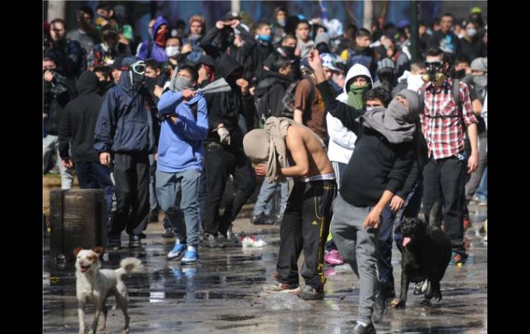 Internacional | Decenas de jóvenes montaron barricadas para obstruir el tránsito en Plaza Almagro Marcha estudiantil en Chile termina con violentos disturbios La marcha de protesta se inició la mañana de este martes en la Estación Central, en la zona poniente de Santiago Por: NTX 9 de agosto de 2011 - 13:15 hs Los disturbios se registraron en las inmediaciones de la Plaza Almagro, a pocas cuadras del palacio de gobierno. AFP / SANTIAGO, CHILE (09/AGO/2011).- Violentos disturbios, que incluyeron el incendio de un vehículo, pusieron fin a una multitudinaria marcha que unos 100 mil estudiantes de educación media y universitarios realizaron por el centro de la capital chilena. Los disturbios se registraron en las inmediaciones de la Plaza Almagro, a pocas cuadras del palacio de gobierno, en momentos en que culminaba la manifestación con un multitudinario mitin con discursos de los dirigentes estudiantiles y actos cívico-culturales. A pocos metros del lugar de concentración, decenas de jóvenes encapuchados montaron barricadas para obstruir el tránsito vehicular e incluso un grupo atacó con piedras y palos un edificio residencial de esa céntrica zona. La militarizada policía de Carabineros intervino con carros lanza-agua y bombas lacrimógenas para dispersar a la turba responsable de los ataques, lo que derivó en enfrentamientos entre manifestantes y la fuerza pública. Un helicóptero policial coordinó las acciones de los agentes policiales desde el aire, mientras varios centenares de efectivos de Carabineros protegían los accesos a la Plaza de la Ciudadanía, aledaña al presidencial Palacio de La Moneda. Los incidentes, que buscaban romper un férreo cerco policial de tanquetas lanza-gases, carros lanza-agua y fuerzas antidisturbios de infantería y a caballo, no lograron sin embargo opacar la magnitud de la manifestación, que reunió a unas 100 mil personas. La presidenta de la Federación de Estudiantes de la Universidad de Chile, Camila Vallejo, aclaró que los participantes de la marcha 'no eran violentistas', por lo que pidió a los manifestantes que se retiraran de manera pacífica al término del mitin. La marcha de protesta se inició la mañana de este martes en la Estación Central, en la zona poniente de Santiago, y se desarrolló a lo largo de algunas cuadras de la Alameda Bernardo O´Higgins, hasta desviarse en dirección a la Plaza Almagro. La columna desbordó las arterias por donde pasó, cubriendo unas 15 cuadras, con gran despliegue de banderas, gritando consignas y desarrollando diversas expresiones artísticas. El paro estudiantil también fue acatado en otras ciudades del país, como Valparaíso, Talca, La Serena, Concepción y Valdivia, donde unas 23 mil personas marcharon de manera pacífica, aunque grupos de encapuchados también protagonizaron enfrentamientos con la policía. Para esta noche, las organizaciones estudiantiles convocaron a un gran 'cacerolazo', una forma de protesta en que las familias, desde las ventanas de sus hogares, hacen sonar sus utensilios de cocina, en demanda de una reforma educativa. Temas América Latina Chile Manifestaciones en el mundo Lee También México busca frenar el paso perfecto de Argentina en Mundial Sub-20 Dónde ver EN VIVO el México vs Argentina por el Mundial Sub-20 La actualidad de Diego Ochoa, formado en Chivas y destacado en el Mundial Sub-20 José Jerí asume como presidente de Perú Recibe las últimas noticias en tu e-mail Todo lo que necesitas saber para comenzar tu día Registrarse implica aceptar los Términos y Condiciones