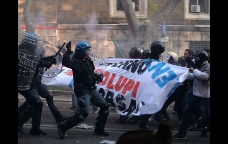 Internacional | La manifestación se salió de control cuando un grupo lanzó objetos contra la policía Más de 20 heridos durante protesta por vivienda en Roma La manifestación se salió de control cuando un grupo lanzó objetos contra los camiones de la policía Por: EL INFORMADOR 12 de abril de 2014 - 23:19 hs Policías antimotines arremeten contra manifestantes.algunas fuentes aseguran que los lesionados serían más de 40. AFP / ROMA, ITALIA (13/ABR/2014).- Enfrentamientos entre la Policía y un grupo de personas que protestaban contra la austeridad y reclamaban el derecho a la vivienda en Roma, dejó al menos 20 heridos, uno de ellos de gravedad. Los protestantes lanzaron botellas y petardos contra los agentes de seguridad. Seis personas fueron detenidas. La manifestación empezó de manera pacífica contra los recortes del Gobierno de Matteo Renzi y por el derecho a la vivienda, pero un grupo de protestantes encapuchados se separaron de la marcha y empezaron a lanzar huevos, botellas y petardos a los camiones de la Policía que custodiaban las sedes de los ministerios de Economía y Desarrollo Económico. Uno de los participantes en la protesta, de nacionalidad peruana, resultó herido de gravedad tras explotarle en la mano un petardo que estaba por lanzar. De acuerdo con el reporte de la Policía, seis personas fueron detenidas y 20 resultaron heridas, aunque otras fuentes aseguraron que sumaban más de 40 los lesionados. “El derecho a manifestar, sobre todo por un tema tan importante y dramáticamente actual como el de la emergencia por la casa no puede transformarse en actos de violencia como los que hemos visto hoy en el centro de Roma”, dijo el alcalde Ignazio Marino. Con información de Notimex y EFE Temas Europa Manifestaciones en el mundo Italia Recibe las últimas noticias en tu e-mail Todo lo que necesitas saber para comenzar tu día Registrarse implica aceptar los Términos y Condiciones