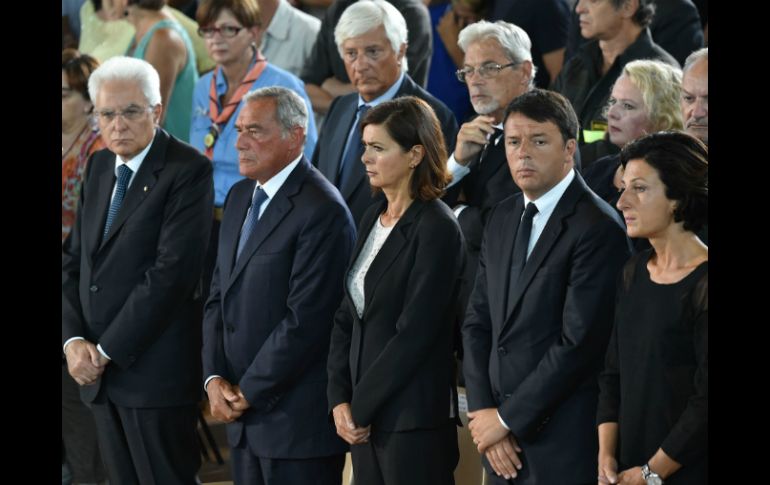 ROMA, ITALIA (27/AGO/2016).- El presidente de la República italiana, Sergio Mattarella, y el primer ministro, Matteo Renzi, asisten este sábado en Ascoli Piceno (centro) al funeral por las víctimas del terremoto del miércoles en el centro del país.Ambos, acompañados por otras autoridades estatales, regionales y políticos, participan desde las 11:25 horas locales (09:25 GMT) en el acto organizado en un polideportivo adyacente al Hospital Mazzoni de esa localidad de la región de Las Marcas donde se han dispuesto los féretros con los cuerpos de 35 de los 290 fallecidos.El acto, el primero oficial y que se celebra mientras Italia está en luto nacional por la catástrofe del pasado 24 de agosto, se produce mientras se conoce que un nuevo recuento provisional de víctimas eleva ya a 290 los muertos por el sismo.La mayor parte de los fallecidos, 230, se han registrado en Amatrice, en la región del Lacio, a unos 140 kilómetros al noreste de Roma y que fue la localidad más afectada por el terremoto de magnitud 6 en la escala de Richter.El funeral de Estado está presidido por el obispo de Ascoli Piceno, Giovanni D'Ercole, y asisten a él familiares de las víctimas y algunos de los miles de personas que participan en las labores de rescate y asistencia a los damnificados.D'Ercole pronunció los nombres de 35 de los fallecidos por quienes fue organizada este sábado la ceremonia religiosa, durante la que se pudo apreciar los rostros emocionados tanto de Renzi como de su esposa, Agnese Landini.El obispo, en su homilía, aseguró que los campanarios de las localidades golpeadas por el terremoto "se han caído, no suenan más", pero aseguró: "volverán a tocar, recuperarán el sonido de la mañana de la Pascua"."No tengáis miedo de gritar vuestro sufrimiento, pero no perdáis el valor. Juntos reconstruiremos nuestras casas e iglesias", dijo el obispo en este funeral religioso con participación de las altas instancias del Estado y en el que se vio comulgar al primer ministro Renzi.Durante el acto algunos de los familiares heridos por el sismo asistieron en las primeras filas junto a los féretros con los cuerpos de los fallecidos y otros siguieron la ceremonia sentados en el suelo abrazados a los ataúdes.