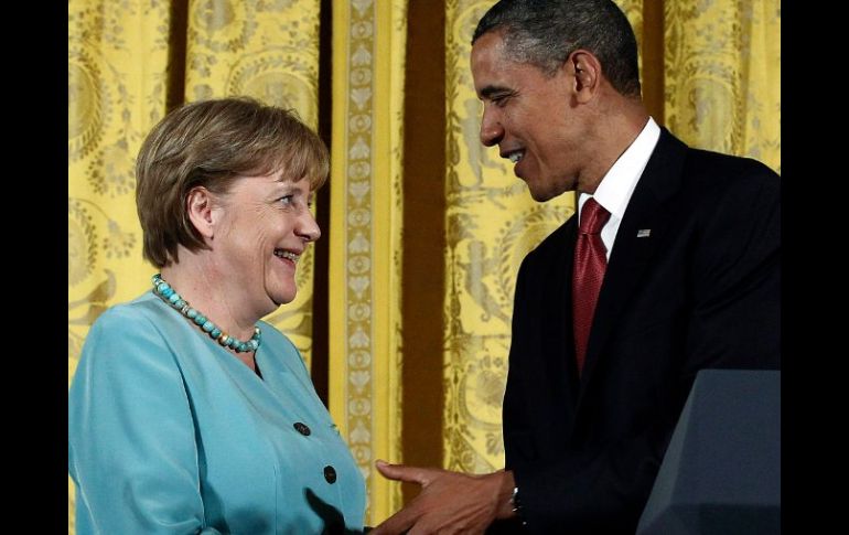Internacional | Elogiaron la relación entre sus países Merkel y Obama refuerzan lazos Alemania-EU Entre los temas de su reunión se encuentran las operaciones de la OTAN en Afganistán y Libia, el proceso de paz del Medio Oriente y la economía global Por: AP 7 de junio de 2011 - 11:21 hs Obama señaló que la visita de Merkel reafirma los lazos indispensables entre EU y Alemania. REUTERS / WASHINGTON, ESTADOS UNIDOS (07/JUN/2011).- En una jornada tanto de política como de fanfarria, el presidente Barack Obama y la canciller alemana Angela Merkel elogiaron el martes la relación entre sus países como un pilar de los esfuerzos para promover la paz y la prosperidad mundial. El presidente recibió a Merkel en la Casa Blanca en un día caluroso y húmedo. Decenas de niños con banderas de Estados Unidos y Alemania estuvieron entre los espectadores aglomerados en el Jardín Sur para la ceremonia de bienvenida. Obama dijo que la visita de Merkel reafirma los lazos "indispensables" entre Estados Unidos y Alemania. "Alemania, en el corazón de Europa, es uno de nuestros más fuertes aliados", afirmó Obama. "Y la canciller Merkel es unos de mis socios globales más cercanos". "En momentos en que algunos se preguntan si el ascenso de nuevas potencias mundiales significa el declive de otras, esta visita reafirma una verdad perdurable: nuestras alianzas con naciones como Alemania son más importantes que nunca", dijo Obama. Merkel recordó que Obama, cuando era candidato a la presidencia, le habló a una multitud de mas de 200 mil personas en Berlín y proclamó que Estados Unidos no tenía mejor aliado que Europa. "Ahora me toca a mí", dijo Merkel. "Europa y Alemania no tienen mejor aliado que Estados Unidos", agregó. Es la sexta visita de Merkel a Estados Unidos desde que Obama tomó el poder. Entre los temas mas importantes que tenían programados abordar en reuniones en la Casa Blanca el martes estaban las operaciones dey la economía global. El martes por la noche, Obama le ofrecerá a Merkel una noche de gran pompa en la Casa Blanca. Durante una cena formal le concederá la Medalla Presidencial de la Libertad, un gesto destinado a impulsar una relación entre ambos mandatarios, que es cordial pero no cercana. Temas Norte América Barack Obama Angela Merkel Lee También "Chucky" Lozano reconoce que jugaría en Chivas o en América ¿Quién ganará el partido entre las América y Chivas? Esto dice la IA José Jerí asume como presidente de Perú Congreso de Perú destituye como presidenta a Dina Boluarte Recibe las últimas noticias en tu e-mail Todo lo que necesitas saber para comenzar tu día Registrarse implica aceptar los Términos y Condiciones