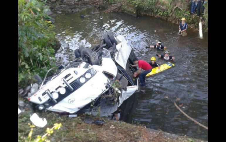 Internacional | El accidente deja seis muertos y al menos veinte heridos Microbús cae a una quebrada en Panamá El accidente deja seis muertos y al menos veinte heridos Por: AFP 25 de enero de 2015 - 10:54 hs Ambulancias trasladan a los pasajeros a diversos hospitales de la zona. TWITTER / @BCBRP PANAMÁ, PANAMÁ (25/ENE/2015).- Seis personas murieron y al menos 20 resultaron heridas en la provincia panameña de Chiriquí, fronteriza con Costa Rica, al caer un camión a una quebrada, informó este domingo el Cuerpo Nacional de Bomberos de Panamá. ''Hay 20 heridos y seis víctimas fatales en accidente de bus de la ruta David-Puerto Armuelles'', aseguran los bomberos en su cuenta de la red social Twitter. Junto al mensaje aparece una fotografía donde se puede ver un microbús de color blanco volcado y destrozado, con las ruedas hacia arriba en un río, con rescatistas a su alrededor. Según medios locales el bus, por razones que se desconocen, se precipitó a un barranco y tras dar varias vueltas terminó en la quebrada Cañaza en Concepción, en el distrito de Bugaba, en la provincia de Chiriquí. El accidente tuvo lugar una hora después de que el microbús saliera de Puerto Armuelles. Varias ambulancias trasladaron a los heridos a diversos hospitales de la zona. Temas América Latina Accidentes en el mundo Panamá Lee También Chivas viaja con ‘Chicharito’ y Robinho al amistoso ante América en Estados Unidos Estas son las bajas de Chivas para el próximo Clásico Nacional Chivas y América calientan en redes el Clásico Nacional de la Fecha FIFA Cierran dos tramos de avenida Juárez por caída de un poste y de ramas Recibe las últimas noticias en tu e-mail Todo lo que necesitas saber para comenzar tu día Registrarse implica aceptar los Términos y Condiciones