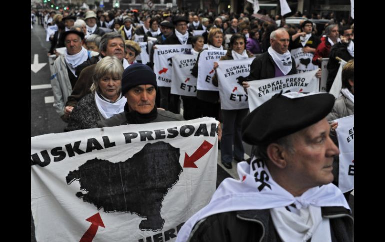 Internacional | Organizan manifestación a favor de derechos de presos etarras Miles de españoles marchan en Bilbao Organizan manifestación a favor de derechos de presos etarras Por: NTX 7 de enero de 2012 - 15:31 hs Esta es la segunda manifestación a favor de un acercamiento de presos etarras a prisiones del País Vasco. AP / MADRID, ESPAÑA (07/ENE/2011).- Miles de personas se manifestaron hoy en la norteña localidad española de Bilbao a favor de los derechos de los miembros de la organización separatista Patria Vasca y Libertad (ETA) que están presos, y demandaron cambios en la política carcelaria. La manifestación organizada por el grupo Egin Dezagun Bidea (Hagamos camino) se llevó a cabo sin incidentes en la capital vizcaína, y demandó que los 700 detenidos de ETA en prisiones españolas y francesas puedan cumplir el resto de sus condenas en la comunidad vasca. La marcha fue autorizada por el juez de la Audiencia Nacional española, Fernando Grande Marlaska, con la condición de que no se gritaran consignas de enaltecimiento de ETA, ya que eso, de acuerdo con el Código Penal, está tipificado como delito. 'Todos los derechos, presos vascos al País Vasco' y 'Repatriación de todos los presos vascos' rezaban las pancartas que encabezaban la marcha en la que se gritaron consignas con esas frases y se pidió amnistía. En declaraciones previas a la manifestación, el diputado por la formación independentista vasca Amaiur, Mikel Erredondo, señaló que el gobierno español debe sacar conclusiones sobre esta manifestación y dar pasos para la solución del conflicto vasco. Esta es la segunda manifestación a favor de un acercamiento de presos etarras a prisiones del País Vasco, en el norte de España, desde el 20 de octubre pasado, cuando ETA anunció el fin de su actividad armada. Temas Europa España Manifestaciones en el mundo Recibe las últimas noticias en tu e-mail Todo lo que necesitas saber para comenzar tu día Registrarse implica aceptar los Términos y Condiciones