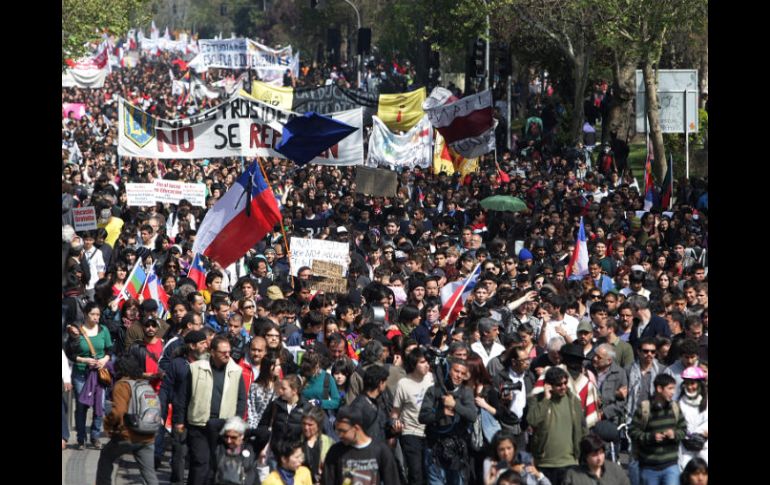 Internacional | El gobierno se negó a parar el trámite del proyecto de ley de educación Miles de estudiantes chilenos vuelven a protestar El presidente Piñera dijo que los estudiantes deben aprovechar llos triunfos que han logrado con sus demandas de cambio en la educación Por: AP 22 de septiembre de 2011 - 17:30 hs Las encuestas reflejan una alta adhesión a las demandas estudiantiles de fortalecer la educación pública. EFE / SANTIAGO DE CHILE (22/SEP/2011).- Decenas de miles de estudiantes volvieron a marchar el jueves por la capital chilena n demanda de reformas a la educación, tras fracasar las negociaciones con el gobierno para establecer una mesa de diálogo para solucionar el prolongado conflicto. Los manifestantes marcharon unas 30 cuadras alejadas del centro capitalino, donde el gobierno no aprueba las protestas. El diálogo entre las partes no prosperó por la negativa del gobierno a paralizar la tramitación de proyectos de ley que los estudiantes exigen discutir previamente y a suspender el término del primer semestre escolar, dos de las cuatro exigencias estudiantiles para iniciar las conversaciones. El gobierno del presidente Sebastián Piñera, al que el conflicto le ha acarreado un fuerte descenso en su popularidad, sostiene, sin embargo, que ha sido flexible y ha acogido varias de las demandas. El ministro del Interior, Rodrigo Hinzpeter, dijo en declaraciones a la televisión estatal que los estudiantes "deben saber abrochar (aprovechar)" los triunfos que han logrado con sus demandas de cambio en la educación. Desde el comienzo de las protestas estudiantiles, que se han hecho extensivas al resto de la población, se han registrado multitudinarias marchas callejeras, las mayores desde que Chile recuperó la democracia en 1990. Pero la última convocatoria el 14 de septiembre tuvo baja adhesión, lo que pie al gobierno para sostener que el movimiento estudiantil estaba desgastado y debilitado. La presidenta de los estudiantes de la Universidad de Chile, Camila Vallejo, dijo a periodistas que "en ningún caso el movimiento se ha debilitado. Todavía tiene gran respaldo ciudadano, todavía los estudiantes siguen insistiendo en la movilización, en que es una herramienta legítima y necesaria en este momento". Vallejo estimó en 180.000 los manifestantes. Al finalizar la marcha, pequeños grupos provocaron desmanes y se enfrentaron con la policía, que los reprimió con carros lanza agua y gases lacrimógenos. Una cantidad indeterminada fue detenida. El vocero oficial, Andrés Chadwick, dijo que el gobierno no cederá en el camino que se ha trazado. Señaló que la nueva protesta "no va a cambiar lo que el es el tema y la preocupación fundamental del gobierno: por una parte seguir insistiendo en la necesidad de la mesa de diálogo y, por otra parte, seguir gobernando... para efecto de ir a través de los distintos proyectos de ley apuntando a la solución" del conflicto. Las encuestas reflejan una alta adhesión a las demandas estudiantiles de fortalecer la educación pública y terminar con el lucro en las universidades privadas y eliminar los aportes estatales a establecimientos privados que lucran con la enseñanza. El gobierno ha señalado que regulará y controlará el lucro, pero no está dispuesto a erradicarlo de las instituciones que reciben financiamiento estatal. Por su parte, el dirigente de los estudiantes de la Universidad Católica, Giorgio Jackson, afirmó a la prensa durante la masiva protesta que "el gobierno debe entender... que ésta no es una demanda de los estudiantes, sino de las familias chilenas que necesitan un cambio transformacional que potencie la educación pública". El presidente del Colegio de Profesores, Jaime Gajardo, organización que junto con los estudiantes universitarios y secundarios encabeza las protestas, dijo que unas 150.000 personas participaron de la marcha, una de las más numerosas que comenzó el conflicto en junio. "Creo que la autoridad tiene que tener sintonía con las demandas que se están planteando y establecer una mesa lo más rápido posible", afirmó Gajardo. Mientras tanto, cuatro estudiantes de enseñanza media, tres mujeres y un hombre, cumplieron 65 días en huelga de hambre y para mostrar su protesta se instalaron en dos tiendas a las puertas de la Universidad de Chile, en pleno centro capitalino. Temas América Latina Chile Sebastián Piñera Lee También Hay mejoría, pero el futuro es “incierto” Beccacece destaca el reto ante México en el Estadio AKRON Chivas y América empatan en partido amistoso 'Chicharito' marca su primer gol al América en partido amistoso Recibe las últimas noticias en tu e-mail Todo lo que necesitas saber para comenzar tu día Registrarse implica aceptar los Términos y Condiciones