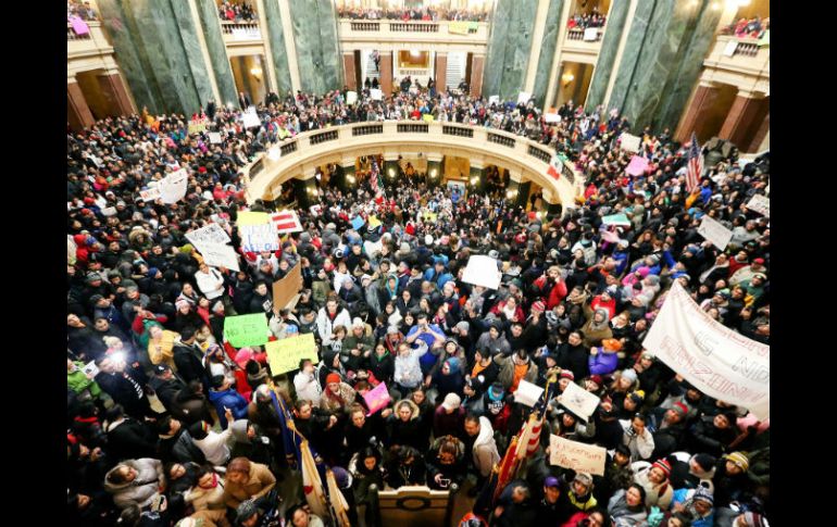 Internacional | Alrededor de 30 mil protestan en Wisconsin contra proyectos de ley racistas Miles de hispanos protagonizan el Día sin Latinos en EU Alrededor de 30 mil protestan en Wisconsin contra dos proyectos de ley que consideran racistas Por: EFE 18 de febrero de 2016 - 16:27 hs Los activistas que organizaron la protesta masiva envían una carta al gobernador del estado para pedirle que no apruebe las leyes. AP / J. Hart ILLINOIS, ESTADOS UNIDOS (18/FEB/2016).- Miles de personas, 30 mil según los organizadores, rodearon el Capitolio estatal de Wisconsin convocadas por activistas que llamaron a un Día sin Latinos para protestar contra dos proyectos de ley que consideran racistas. "La nuestra es una estimación conservadora sobre la concurrencia, pero la presencia y fuerza de la comunidad latina inmigrante ha sido obvia", declaró la directora ejecutiva de Voces de la Frontera, Christine Newman Ortiz. Otras fuentes señalaron que la concentración pudo ser mayor, a juzgar por el congestionamiento provocado en calles y autopistas de Madison, capital del estado, por las caravanas de autobuses y automóviles llegados desde todos los puntos del estado. Sin embargo, el Departamento de Policía del Capitolio calculó en 14 mil los manifestantes que se acercaron hasta el edificio público y sus alrededores, mientras que la Policía local estimó en 20 mil el número de personas que rodearon el Congreso estatal. La iniciativa consistía en que los hispanos no se presentaran a trabajar o llevaran a sus hijos a la escuela, como medida de protesta. "Hoy nos unimos en todos los rincones del Capitolio para luchar por nuestras familias y decir no a propuestas de ley racistas e antiinmigrantes", indicaba la convocatoria. Entre los manifestantes había muchos estudiantes de la capital del estado, y el distrito escolar dijo que faltaron a clase unos cuatro mil 500 estudiantes. Samuel Friedman, de Voz de la Frontera, dijo que en ciudades como Madison, Milwaukee y Fox Cities la movilización "se asemejó a un paro general", con el cierre de decenas de restaurantes y comercios, cuyos trabajadores se unieron a la movilización. La industria lechera de Wisconsin, vital para la economía del estado y cuya mano de obra está formada principalmente por inmigrantes, envió delegaciones de trabajadores a la marcha y una carta a los legisladores estatales para oponerse a los proyectos de ley. En una carta abierta que entregaron en la oficina del gobernador republicano de Wisconsin, Scott Walker, los activistas le piden que no promulgue las leyes si llegan a su firma. La ley AB 450 permitiría que la policía investigue el estatus migratorio de los detenidos y los entregue a Inmigración en caso de no tener un estatus legal en el país. A su vez, la ley SB 533 bloquearía el uso en Wisconsin de tarjetas de identificación municipales, como la que se aprobó en Milwaukee a fines de año para los indocumentados. También ciudadanos de organizaciones hispanas conservadoras de Wisconsin, como Zeus Rodríguez, de Hispanics for Leadership, publicaron cartas al gobernador en las que le piden que use el sentido común e ignore la AB 450 o limite su impacto potencial a personas procesadas por delitos graves. "Le pido que lidere con sentido común y con una visión que dé la bienvenida y proteja a todos los que viven pacíficamente en Wisconsin", escribió. Temas Norte América Estados Unidos Manifestaciones en el mundo Inmigrantes Lee También Estos son los estados en alerta por posible propagación de dengue Despliegan operativo tras bloqueos en Chiapas Así se prevé que avance el desarrollo de "Sonia" en México Visa laser: ¿Qué vigencia tiene y cuáles son sus limitaciones? Recibe las últimas noticias en tu e-mail Todo lo que necesitas saber para comenzar tu día Registrarse implica aceptar los Términos y Condiciones