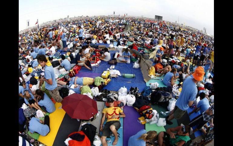 Internacional | Los equipos de seguridad han atendido a centenas de desmayados e insolados Miles de jóvenes esperan al Papa en Madrid Más de 500 mil personas esperan al Papa Benedicto XVI en la base aérea de Cuatro Vientos para una vigilia de oración en la JMJ Por: NTX 20 de agosto de 2011 - 12:43 hs -Habla Papa con jefe de la oposición española sobre crisis económicaMADRID, ESPAÑA (20/AGO/2011).- Más de 500 mil personas esperan al Papa Benedicto XVI en la base aérea de Cuatro Vientos para una vigilia de oración en la Jornada Mundial de la Juventud (JMJ), mientras los equipos de seguridad han atendido centenas de desmayados e insolados. Los servicios de emergencia reportaron que unas 679 personas fueron atendidas porque sufrían mareos y lipotimias a causa de las altas temperaturas, que han llegado a superar los 39 grados centígrados. Aunque el aeródromo está abarrotado y no es posible divisar el final de la multitud, miles de jóvenes siguen llegando para participar de la celebración que presidirá el Papa a partir de las 20:30 horas local (18:30 GMT). Para aplacar el calor, los bomberos rocían con agua a los jóvenes, mientras en los puntos-restaurante, colocados en diversos sectores, se ofrece agua gratuita. Cuatro Vientos es un espacio abierto de más de 100 hectáreas, equivalente a unos 48 campos de fútbol. En un recorrido realizado por Notimex se observó que los peregrinos formaron pequeños campamentos pegados a las vallas de contención, con sombrillas y cartones. El ambiente en Cuatro Vientos es de alegría y colorido, con música, animaciones, banderas de diversos países y estandartes. Los jóvenes cantan, bailan y constantemente lanzan la porra: 'íEsta es, la juventud del Papa!'. La vigilia de oración en Cuatro Vientos es uno de los eventos culminantes de la Jornada Mundial de la Juventud y durante ella –entre otras cosas- el Papa responderá a cinco preguntas que le expondrán igual número de católicos. Mientras los jóvenes esperan al Papa, la prensa padece un 'desborde' en la organización. Los periodistas trabajan con conexiones precarias a internet y su acceso a los peregrinos es restringido, mientras los fotógrafos no tienen una tribuna para estar cerca del Papa y captar su imagen. Temas Europa Papa Benedicto España Lee También Dr. Simi llega al Vaticano; le entregan peluche al Papa León XIV España consigue su boleto a los cuartos de final del Mundial Sub-20 Derrumbe de edificio en Madrid deja cuatro desaparecidos y tres heridos Papa lamenta "el inmenso sufrimiento padecido por el pueblo palestino" Recibe las últimas noticias en tu e-mail Todo lo que necesitas saber para comenzar tu día Registrarse implica aceptar los Términos y Condiciones