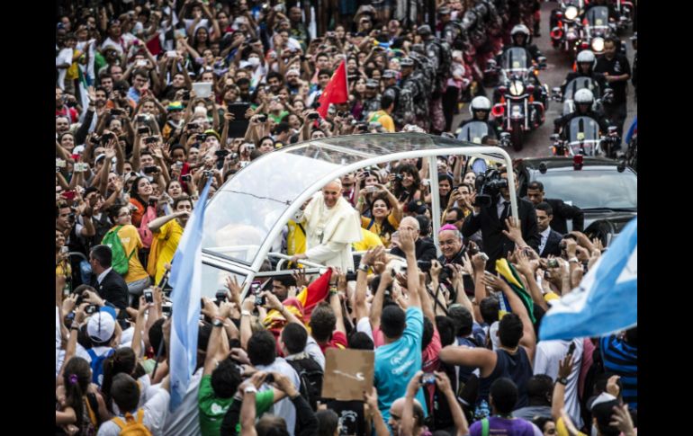 Internacional | Francisco inicia su primer viaje para presidir la Jornada Mundial de la Juventud Miles de peregrinos reciben al Papa en Río de Janeiro Francisco inicia su primer viaje internacional para presidir la Jornada Mundial de la Juventud Por: AFP 22 de julio de 2013 - 15:10 hs RÍO DE JANEIRO (22//JUL/2013).- El papa Francisco llegó este lunes a Rio de Janeiro y se pasea en papamóvil semidescubierto por el centro de la ciudad, donde miles de peregrinos de todo el mundo gritan y lloran emocionados al darle la bienvenida al primer papa latinoamericano de la historia. El Papa argentino, de 76 años, inició así en Brasil, el país con más católicos del mundo, su primer viaje internacional para presidir la Jornada Mundial de la Juventud (JMJ) del 23 al 28 de julio, a la que asistirán un millón y medio de personas. El Papa Francisco, apóstol de una iglesia misionera y cercana a los pobres, cumplirá una intensa agenda en este país sacudido recientemente por protestas sociales contra la corrupción y los pésimos servicios públicos, que incluye una visita a una favela, a adictos de crack y al mayor santuario católico de Brasil, Aparecida, en el estado de Sao Paulo. Paseo en papamóvil semidescubierto El automóvil cerrado que llevó al papa del aeropuerto internacional hasta la catedral metropolitana en el centro de Rio fue cercado por multitudes de personas en repetidas oportunidades, muchas de las cuales le tiraban regalos por la ventanilla abierta. El coche debió frenar varias veces, mientras los guardias de seguridad que corrían junto al automóvil alejaban a la gente. Tras llegar a la catedral, el papa subió al papamóvil e inició un paseo por el centro de la ciudad, hasta el teatro municipal. La multitud en delirio le rodeaba, mientras el papa, tranquilo, saludaba a todos con una sonrisa. "Queremos que el papa nos muestre esa iglesia abierta, de todas las nacionalidades, que es lo que nos reúne hoy", dijo a la argentina Eliana Tardivo, de 23 años y oriunda de Santa Fe. "La venida del papa es una esperanza para el crecimiento de esta nueva iglesia", sostuvo el monje franciscano Everton Xavier Marques, de 29 años, de Minas Gerais (sureste de Brasil). El Papa Francisco advirtió el lunes que el mundo corre el riesgo de tener una generación entera de jóvenes desempleados desde el avión que lo conducía a Brasil. "Corremos el riesgo de tener una generación desempleada", dijo el papa, y pidió que se evite "aislarlos". También condenó "la cultura del rechazo a los ancianos". Durante su visita de siete días en Brasil, Francisco buscará revitalizar a la Iglesia en Latinoamérica, su mayor feudo, pero donde pierde terreno desde hace tres décadas, sobre todo ante las iglesias pentecostales y el laicismo. El pontífice encontrará un Brasil confrontado a un creciente descontento social y en plena transformación religiosa. El hartazgo ante la corrupción política y la pésima calidad del transporte, la salud y la educación pública -en contraste con los millones que se gastan en estadios para el Mundial de fútbol 2014- llevó a más de un millón de brasileños, sobre todo jóvenes de clase media, a protestar en las calles en junio, en plena Copa Confederaciones. Las protestas terminaron muchas veces en enfrentamientos violentos con la policía y con saqueos y destrozos, la última de ellas el jueves pasado en Leblon e Ipanema, dos de los barrios más ricos de Rio. Manifestaciones cuando visite la gobernación El Papa debe reunirse este lunes con Rousseff en el palacio Guanabara, sede de la gobernación del estado de Rio de Janeiro, frente al cual el grupo Anonymous Rio convocó a través de las redes sociales a un acto contra los 53 millones de dólares que cuestan a los contribuyentes brasileños su visita y la JMJ. Los ateos, que protestarán por el mismo motivo, han llamado a un "desbautismo" colectivo, y grupos de defensa a los derechos de homosexuales convocaron a un "beijaço" (besazo) entre personas del mismo sexo. Pero nada de eso disuadió al papa argentino de su voluntad de pasearse por el centro de Rio en un papamóvil descubierto inmediatamente después de su llegada. El Vaticano asegura que el pontífice no está preocupado por las protestas y los expertos señalan que su discurso de reforma de una Iglesia en crisis, contra el derroche y en defensa de los desposeídos, está en sintonía con los manifestantes. El operativo de seguridad contará con unos 30 mil militares y policías. "Llego a Río en unas horas y mi corazón está lleno de gozo porque dentro de poco estaré con ustedes para celebrar la JMJ", escribió el papa en un tuit en español antes de emprender el viaje. Al margen de la visita papal, la Iglesia católica reclamó a Rousseff que vete un proyecto aprobado en el parlamento sobre la atención a víctimas de violencia sexual, y que en su opinión abre la vía a una legalización amplia del aborto, actualmente solo autorizado con muchas restricciones en casos de peligro de vida para la madre o en caso de violación. Temas América Latina Brasil Papa Francisco Lee También ¿Sabrá el gobernador? Regresa a Zapopan "La Generala" como parte de la celebración de la Romería 2025 Chivas y América empatan en partido amistoso 'Chicharito' marca su primer gol al América en partido amistoso Recibe las últimas noticias en tu e-mail Todo lo que necesitas saber para comenzar tu día Registrarse implica aceptar los Términos y Condiciones