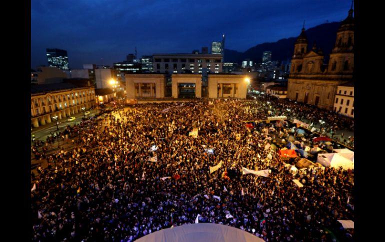 BOGOTÁ, COLOMBIA (12/OCT/2016).- Al grito de "No más guerra" y con flores blancas en la mano, decenas de miles de personas marcharon el miércoles por la paz en Colombia, 50 mil de ellas en Bogotá, al lado de indígenas y de víctimas del conflicto armado."Acuerdos ya", gritaban los manifestantes durante esta "Marcha de las flores", reclamando una salida a la crisis suscitada por el rechazo en el plebiscito del 2 de octubre del pacto suscrito entre el gobierno de Juan Manuel Santos y la guerrilla de las FARC.A cada lado del cortejo, que se extendía a lo largo de varios kilómetros hasta la plaza Bolívar, en el corazón de la capital, miles de personas formaron un cordón de honor para ofrecer flores a los indígenas y a las víctimas del conflicto que desfilaban.Entre ellos figuraba una joven que portaba una gigantesca foto de su hermano, Alex Ortega, desaparecido hace seis años, al igual que otros 45 mil colombianos desde el comienzo de esta guerra fratricida en la década de 1960, que dejó además más de 260 mil muertos y 6.9 millones de desplazados."Fue secuestrado por cinco personas. Durante un año recibimos pedidos de rescate, y luego más nada", dijo Daisy Ortega, de 29 años, que ignora aún por qué su hermano mayor fue secuestrado mientras trabajaba en la granja de su familia, pequeños campesinos de la localidad de Mocoa, en el Putumayo, una de las regiones más afectadas por el conflicto."Necesitamos paz" No muy lejos de Daisy, Icha Blanca, de 65 años, vestida con un colorido poncho y un sombrero de paja, tocaba suavemente un tambor tradicional que le colgaba del cuello. "Tenemos que marchar juntos porque todos necesitamos paz", declara esta mujer de la etnia Muisca, originaria del territorio de Bacata, el nombre de Bogotá en lengua indígena.Estudiantes de diferentes universidades de Bogotá reunieron más de 23 mil flores donadas por horticultores y particulares, mientras otras miles eran vendidas en las calles a los manifestantes."Venimos movilizándonos para demostrarle al país que aquellos que perdimos el referendo por un margen mínimo, ese 49%, también estamos presentes, que los acuerdos que se firmaron en Cartagena son legítimos y que nosotros, la juventud, los estudiantes, creemos en esos acuerdos y queremos que se implementen", dijo uno de los organizadores de la marcha, Santiago Amaya."La abstención en este país es gigantesca, sobretodo entre los jóvenes, por falta de cultura política", lamentó este joven de 24 años que acaba de diplomarse en ciencias políticas.Más de 62%, un récord, de los colombianos se abstuvieron de participar en el referendo del 2 de octubre, en el que el "No" obtuvo, de manera sorpresiva el 50.2% de los votos.Al convocar al referendo, no obligatorio, el presidente Juan Manuel Santos pretendía dotar de una amplia legitimidad al acuerdo de paz firmado unos días antes con las Fuerzas Armadas Revolucionarias de Colombia (FARC) en Cartagena de Indias.Una movilización "espectacular" ¡"Es espectacular! Cuando decidimos hacer esa marcha por la paz el 12 de octubre, no pensábamos que iba a venir tanta gente!", exclamaba Jesús David Calmabas, 29 años, de la etnia Nasa, representante de la reserva de Huella Caloto, en la región del Norte del Cauca (oeste) en la Organización Nacional Indígena de Colombia (ONIC).Mientras el final de la manifestación no había llegado aún a la Plaza Bolívar, en el cercano palacio presidencial, Santos, flamante premio Nobel de la Paz, continuaba sus reuniones con representantes de distintos sectores de la sociedad, que inició tras la derrota del "Sí" en el plebiscito."La gran mayoría me ha pedido que encontremos una solución rápida porque la incertidumbre es enemiga del proceso", dijo Santos durante un discurso televisado. "La paz nos debe unir", advirtió.