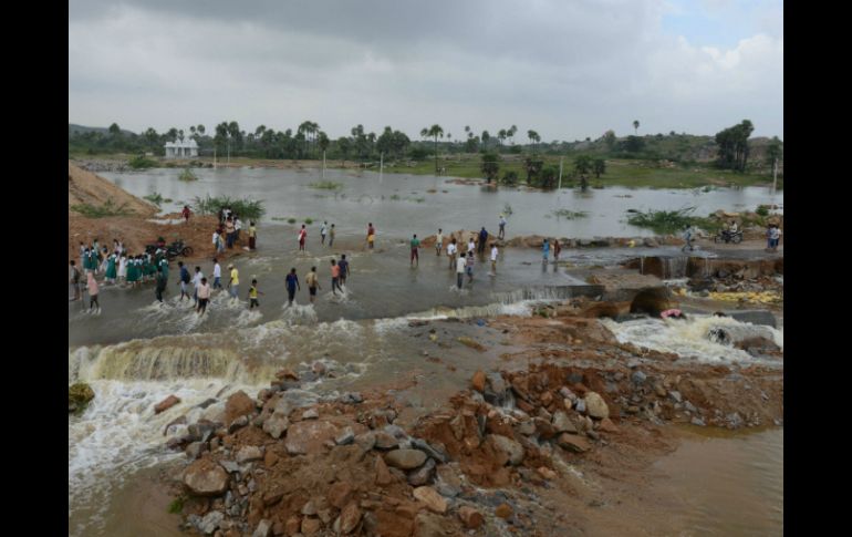 Internacional | Reportan que cientos de aldeas están inundadas por las precipitaciones Mueren 29 personas en la India tras lluvias torrenciales Fuertes lluvias en los últimos cinco días han provocado la muerte de 29 personas en el sureste del país Por: EFE 26 de octubre de 2013 - 08:18 hs Aldeanos pasan por un camino inundado tras las fuertes lluvias en el distrito Hayat Nagar, en la India. AFP / NUEVA DELHI, INDIA (26/OCT/2013).- Siete personas murieron hoy a raíz de las lluvias torrenciales en el estado de Andhra Pradesh, en el sureste de la India, y elevaron el número de fallecidos por esta causa a 29 en los últimos cinco días, informaron fuentes oficiales. Las fuentes, citadas por la agencia local IANS, relataron que cientos de aldeas están inundadas por las precipitaciones, que han afectado a la zona costera de la región y por la crecida de varios ríos, que han forzado la evacuación de más de 70 mil personas. De acuerdo con las autoridades, más de seis mil viviendas han quedado dañadas por el azote del monzón, al igual que más de 75 kilómetros de carreteras y más de medio millón de hectáreas de cultivo. El Departamento Meteorológico de la India ha pronosticado que las precipitaciones torrenciales en la zona continuarán durante las próximas 48 horas. Como el vecino estado de Orissa, Andhra Pradesh se vio afectado hace dos semanas por el paso del ciclón Phailin, que costó la vida a al menos 23 personas y obligó a desplazar a cerca de un millón de lugareños a causa de las lluvias y los fortísimos vientos. El monzón de este año en la India es especialmente mortífero después de la desaparición de cerca de seis mil personas en la norteña región de Uttarajand a causa de las inundaciones que arrasaron al zona el pasado julio. Temas Asia Fenómenos Naturales India Inundaciones en el mundo Lee También Anuncian conectividad gratis en Veracruz y Puebla tras inundaciones Reportan 64 personas fallecidas y 65 desaparecidas tras las fuertes lluvias en México Así se prevé que avance el desarrollo de "Sonia" en México Hay más de mil viviendas afectadas por lluvias en Puerto Vallarta: Protección Civil Recibe las últimas noticias en tu e-mail Todo lo que necesitas saber para comenzar tu día Registrarse implica aceptar los Términos y Condiciones