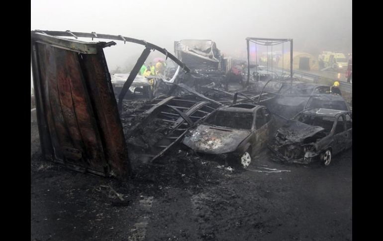 Internacional | Se desconocen las causas del hehco Mueren cinco personas en dos carambolas en Portugal El accidente también provocó que 24 personas estén heridas de gravedad Por: EL INFORMADOR 24 de agosto de 2010 - 01:16 hs Socorristas trabajan en la zona del desastre, apoyados por más de 50 vehículos y tres helicópteros. EFE / LISBOA, PORTUGAL (24/AGO/2010).- Cinco muertos, 24 heridos graves y 48 leves, es el balance provisional de dos choques en cadena registrados en la autopista A-25, en el municipio de Sever do Vouga, a unos 250 kilómetros al norte de Lisboa. De momento se desconocen las causas de los accidentes, aunque las autoridades apuntaron que pueden estar relacionados con “las primeras lluvias” y con la neblina detectada en la región. Unos 10 vehículos ligeros y dos pesados se incendiaron. Temas Europa Accidentes en el mundo Muertes Portugal Lee También Adiós a Diane Keaton, ganadora del Oscar y musa de Woody Allen Muere la actriz Diane Keaton a los 79 años Choque en la colonia Aldama Tetlán deja dos lesionados Lluvias dejan 29 muertos en un día en México Recibe las últimas noticias en tu e-mail Todo lo que necesitas saber para comenzar tu día Registrarse implica aceptar los Términos y Condiciones