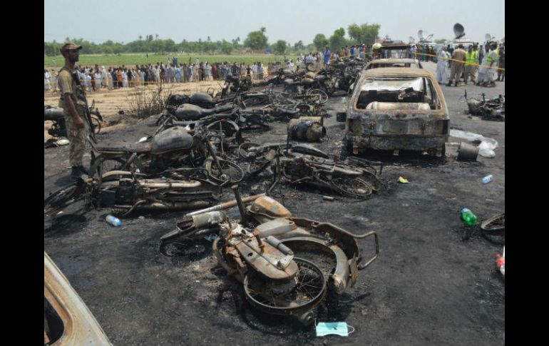 ISLAMABAD, PAKISTÁN (25/JUN/2017).- Más de un centenar de personas murieron calcinadas y un número similar resultaron heridas por la explosión hoy de un camión cisterna cargado de gasolina que volcó y luego se prendió fuego en el este de Pakistán, en un accidente que ha enlutado las celebraciones por el fin del mes sagrado de Ramadán.El lugar donde a primera hora de la mañana se produjo el accidente, en una carretera nacional cerca de la localidad de Bahawalpur, en la provincia de Punyab, era horas después un amasijo de vehículos calcinados de los que aún brotaba una gran humareda.Hasta allí se habían trasladado vecinos de la zona al conocer que un camión cisterna cargado con miles de litros de gasolina había volcado, derramando por el asfalto el preciado líquido, un regalo por el fin de Ramadán para las familias más empobrecidas.Sin embargo, la suerte se tornó en tragedia cuando la gasolina prendió fuego de manera repentina, desencadenando una explosión que envolvió a los presentes sin que tuvieran tiempo de escapar, dijo a Efe un portavoz de la policía local, Ghulam Dastgir."123 personas murieron calcinadas vivas en el lugar y cuatro fallecieron en el hospital. Otras 146 se encuentran heridas, de las cuales 60 se hallan en estado crítico", afirmó a Efe el comandante Baqir Hussain del equipo de rescate desplegado en la zona.Unidades de bomberos lograron extinguir el incendio mientras los equipos de rescate y vecinos de la zona trataban de salvar al mayor número posible de personas, entre ellas niños, que fueron trasladados a hospitales de las localidades de Multan y Bahawalpur.Entre los vehículos calcinados hay tres coches y 86 motocicletas, debido a que muchos de los vecinos que se trasladaron al lugar para recolectar gasolina lo hicieron tanto a pie como en moto, anotó Hussain, que reveló que el camión volcó por un exceso de velocidad.El portavoz del Ejército paquistaní, Asif Ghafoor, explicó a través de su cuenta oficial de Twitter que las Fuerzas Armadas enviaron helicópteros al lugar del siniestro para trasladar a las víctimas a hospitales y centros de quemados."Los hospitales se encuentran en estado de alerta", concluyó Ghafoor.La oficina de comunicación del Ejército detalló más tarde en su cuenta de la red social que 51 de los heridos que se encontraban en peor estado fueron trasladados en helicóptero a un centro hospitalario en Multan.El primer ministro paquistaní, que se encuentra de viaje en Londres, mostró su "más profunda aflicción" por el alto número de víctimas en el accidente y solicitó a las autoridades provinciales que aporten asistencia médica completa a los heridos.Pakistán registra uno de los índices más altos del mundo de accidentes de tráfico debido al pésimo estado de las carreteras, a las deficiencias de los vehículos y al escaso respeto que se tiene hacia las normas de circulación.En enero de 2015, en un accidente similar, 62 personas murieron calcinadas y once resultaron heridas graves después de la colisión de un autobús repleto de pasajeros con un camión cisterna que transportaba gasolina en el sur del país.Este año la celebración mañana en Pakistán del Eid al-Fitr, festividad que marca el fin del mes sagrado de Ramadán, se vio empañada también por una serie de atentados ocurridos el viernes en la ciudad occidental de Quetta y en las norteñas áreas tribales.En Quetta, un atacante suicida hizo volar por los aires un vehículo cargado de explosivos en la entrada de un cuartel policial, causando 11 muertos y 25 heridos, mientras una doble explosión en un mercado en las áreas tribales dejó 50 muertos y 261 heridos.