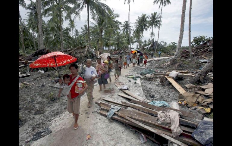 Internacional | El volcán Merapi, en la isla de Java, volvió a entrar en erupción este jueves Muertes por catástrofes en Indonesia superan 340; la ayuda comienza a llegar Tras el sismo de 7.7 grado Richter del lunes pasado, un tsunami y la posterior erupción del volcán Merapi provocaron emergencia en las islas indonesias Por: AFP 28 de octubre de 2010 - 09:02 hs Dos días después de que el sismo golpeó la región, la ayuda comienza a sr distribuída entre los afectados. EFE / ISLA DE PAGAI DEL NORTE, INDONESIA (28/OCT/2010).- El balance de víctimas por el poderoso tsunami que arrasó el lunes a islas indonesias del Océano Índico continuaba subiendo y llegaba el jueves a 343 muertos, mientras comenzaba a llegar la ayuda gubernamental. El país fue golpeado igualmente el martes por la erupción del volcán Merapi, en la isla de Java, que dejó 32 víctimas mortales y que el jueves volvió a entrar en erupción, lanzando cenizas volcánicas y nubes de gases. El material de socorro y la ayuda comenzaban a llegar masivamente a las zonas más afectadas de las Mentawai, dos días después del sismo seguido de tsunami que afectó las costas occidentales de ese collar de islas del Índico. Pero las esperanzas de encontrar sobrevivientes entre las personas desaparecidas disminuía y el número de muertos alcanzaba los 343, según el último balance oficial del jueves. El balance de la víspera era de 272 muertos. Un navío con alimentos, agua y medicinas llegó el jueves en la mañana a Sikakap, en la isla de Pagai del norte, donde la ausencia de rutas en buen estado y de comunicaciones dificultaba las operaciones de socorro, constató un periodista de la AFP. En el puerto, cientos de habitantes eran atendidos, sobre todo por heridas provocadas por el paso de las sucesivas olas gigantes que avanzaron hasta 600 metros tierra adentro. Todos los habitantes daban cuenta de la brutalidad de la catástrofe. El tsunami llegó apenas unos 10 minutos después del terremoto de magnitud 7.7, cuando era de noche y llovía. "Escuchamos como una explosión cuando llegó la primera ola", relató Chandra, de 20 años. La joven consiguió sobrevivir "por milagro gracias al tronco de un cocotero". Pero no su marido, cuyo cuerpo fue ubicado, ni su bebé, que sigue desaparecido. En el poblado de Muntei Baru Baru, donde sólo quedan los cimientos de las casas, los sobrevivientes dijeron que no fueron advertidos, si bien la alerta de tsunami había sido lanzada por las autoridades inmediatamente después del terremoto. Un sistema sofisticado y costoso de alerta había sido instalado a lo largo de la costa de Sumatra luego del terrible tsunami de diciembre de 2004, que mató a más de 220 mil personas en varios países asiáticos. Pero las autoridades reconocen que el sistema no está disponible en las Mentawai, donde numerosos pueblos carecen de electricidad. A más de mil kilómetros de las Mentawai, la población rindió un último homenaje a las más de 30 víctimas mortales de la erupción del volcán Merapi, la otra catástrofe natural que afectó a Indonesia esta semana. Unos veinte de los 32 muertos fueron enterrados juntos. Algunos cuerpos no pudieron ser identificados debido a que fueron desfigurados por las cenizas incandescentes que lanzó el volcán el martes. Una ceremonia particular fue organizada para el que según los indonesios personificaba el Merapi, el "abuelo" Marijan, que oficiaba como "guardián espiritual" de la montaña. Falleció a los 83 años después de haber rechazado dejar su casa a pesar de los riesgos de erupción. El balance de pérdidas humanas podría haber sido mucho mayor sin la orden de evacuación lanzada el lunes por las autoridades para las 19 mil personas que vivían en las laderas del volcán. Este jueves, el Merapi, considerado como el volcán más activo de Indonesia volvió a entrar en erupción. "Registramos una nueva erupción volcánica moderada. La amenaza se mantiene", declaró un encargado de vigilancia de los volcanes en Indonesia, Surono. El cráter del volcán, de dos mil 914 metros de altura y situado en el corazón de una región muy poblada de la isla de Java, lanzó nubes de gases con magma y cenizas, según este vulcanólogo. Temas Asia Desastres Naturales Indonesia Lee También Zonas de Jalisco que esperan lluvia en las próximas horas México lucha por acceder a más de 300 pueblos incomunicados tras las lluvias Damnificados de Poza Rica denuncian contaminación con hidrocarburos Recibe las últimas noticias en tu e-mail Todo lo que necesitas saber para comenzar tu día Registrarse implica aceptar los Términos y Condiciones