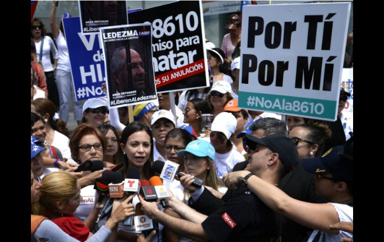 Internacional | Se exige anular la autorización de la fuerza pública de reprimir con armas Mujeres marchan contra uso de fuerza en protestas en Venezuela Se exigió anular la resolución que autoriza a la fuerza pública reprimir con armas las manifestaciones Por: AP 8 de marzo de 2015 - 17:48 hs La marcha fue convocada por la líder opositora María Corina Machado. AFP / F. Parra CARACAS, VENEZUELA (08/MAR/2015) .-Sectores de la oposición encabezaron el domingo a un grupo de mujeres que se movilizó por las calles de la capital venezolana para exigir la derogación de una resolución que autoriza a la fuerza pública a reprimir con armas de guerra las manifestaciones. La marcha fue convocada por la líder opositora María Corina Machado en el marco del Día Internacional de la Mujer bajo el eslogan "Por la vida de tus hijos defiéndelos, es tu responsabilidad". Cientos de mujeres exigieron al ministro de Defensa la anulación inmediata de la resolución 8610 que faculta a la Fuerza Armada Nacional Bolivariana a intervenir en el control de las manifestaciones. Machado se declaró "indignada", pero dijo que las mujeres estaban "dispuestas a luchar en primera fila" para evitar el asesinato de sus hijos. "Las madres vamos adelante. Por eso estamos aquí hoy", declaró. En tanto, la chef María Eugenia Rodríguez aseguró estar cansada de la impunidad del gobierno. "Matan a nuestros hijos. Todos los hijos de cualquier madre nos duelen a todas las que somos madres. Venezuela no puede perderse en manos de estos corruptos y delincuentes", aseguró Rodríguez. Temas América Latina Venezuela Mujeres Día Internacional de la Mujer Lee También Futbol hoy 22 de octubre de 2025: ¿Dónde ver los partidos en vivo? Dónde comprar más barata la flor de cempasúchil en CDMX para el Día de Muertos 2025 ¿Cuánto vale la 'Hormiga' González, joya de Chivas que ya es pretendida fuera de México? Desfile de Catrinas 2025 CDMX: Fecha, ruta y hora del recorrido del Día de Muertos Recibe las últimas noticias en tu e-mail Todo lo que necesitas saber para comenzar tu día Registrarse implica aceptar los Términos y Condiciones