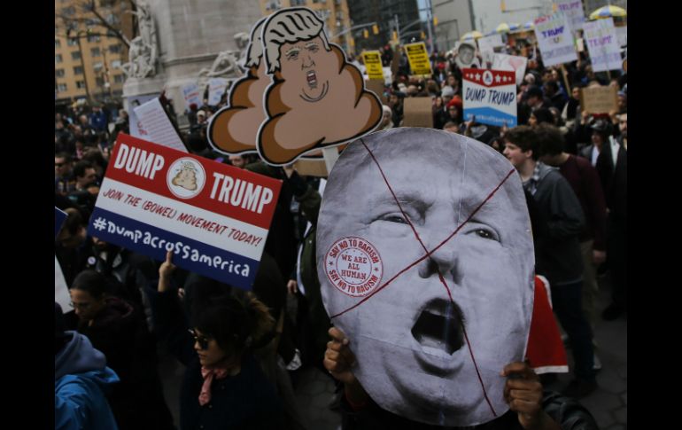 Internacional | Unas mil personas protestaron para denunciar 'el discurso de odio' del magnate Neoyorquinos se manifiestan en contra de Trump Unas mil personas protestaron para denunciar 'el discurso de odio' del magnate Por: NTX 19 de marzo de 2016 - 15:08 hs Pancartas con frases como 'No al racismo, No al fascismo, No a Trump' fueron mostradas durante la marcha. AFP / E. Muñoz CIUDAD DE MÉXICO (19/MAR/2016).- Unas mil personas se manifestaron hoy en el centro de esta ciudad para protestar contra la "retórica de la división" usada por el magnate Donald Trump en su campaña por la nominación presidencial republicana. Rodeados de policías, los manifestantes se concentraron junto al Central Park para denunciar "el discurso del odio" y "los planes extremistas" de Trump, según los organizadores. Pancartas con frases como "No al racismo. No al fascismo. No a Trump" fueron mostradas durante la marcha que concluyó en la Torre Trump, que el magnate tiene en la Quinta Avenida. La policía utilizó gases lacrimógenos cuando algunos manifestantes rebasaron una barrera y al menos uno de ellos fue arrestado, según mostraron imágenes de la cadena CNN. La protesta en Nueva York coincidió con otra realizada en Phoenix, Arizona, donde decenas de manifestantes bloquearon una carretera que conducía a un acto de campaña de Trump. El alguacil del condado de Maricopa, Joaquin Enriquez, declaró a CNN que tres manifestantes fueron arrestados y dos autos fueron removidos de la carretera Shea Boulevard que lleva a la comunidad de Fountain Hills, donde Trump realizó un mitin. Temas Norte América Elecciones EU Estados Unidos Manifestaciones en el mundo Republicanos Donald Trump Lee También José Jerí asume como presidente de Perú Congreso de Perú destituye como presidenta a Dina Boluarte El efecto Donald Trump Premio Nobel de la Paz es para María Corina Machado, líder opositora de Venezuela Recibe las últimas noticias en tu e-mail Todo lo que necesitas saber para comenzar tu día Registrarse implica aceptar los Términos y Condiciones