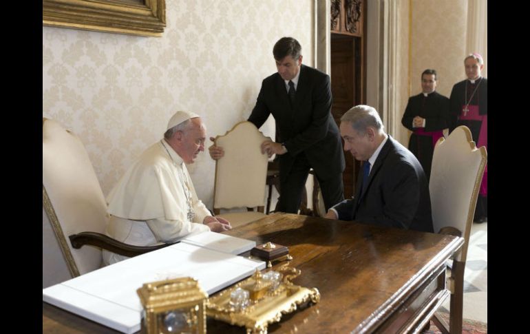 Internacional | El primer ministro de Israel visita el Vaticano para hablar de Medio Oriente Netanyahu obsequia al Papa Francisco un libro sobre Inquisición El primer ministro de Israel visita el Vaticano para hablar de Medio Oriente Por: EFE 2 de diciembre de 2013 - 12:52 hs CIUDAD DEL VATICANO (02/dic/2013).- El primer ministro israelí Benjamin Netanyahu obsequió el lunes al papa Francisco un libro sobre la Inquisición española, escrito por su difunto padre, especialista en la conversión forzada y expulsión de los judíos de la península en el siglo XV. Netanyahu le presentó al pontífice una traducción española del libro "Orígenes de la Inquisición", publicado en 1995, durante una audiencia privada de 25 minutos. También le obsequió una gran menorá de plata. El padre del primer ministro, el historiador israelí Ben-Zion Netanyahu, murió el año pasado. Activista que se opuso a la partición de Palestina entre musulmanes y judíos, era conocido en los círculos académicos por sus investigaciones sobre la persecución que hizo la Inquisición de los judíos españoles en la Edad Media. "A su santidad el papa Franciscus, un gran pastor de nuestra herencia común", escribió el mandatario israelí como dedicatoria. Netanyahu bromeó que, mientras que su padre hablaba español a la perfección como resultado de sus investigaciones, "mi español es inexistente". El gobernante israelí y el papa argentino hablaron por intermedio de un traductor. Francisco le agradeció y a su vez le presentó una placa de bronce de San Pablo. El diálogo entre las delegaciones israelí y vaticana se centró en la reanudación de las conversaciones de paz entre israelíes y palestinos y la próxima peregrinación de Francisco a Tierra Santa. Aunque no hay fecha concreta, el viaje está previsto para mayo, con una escala en Jordania. Horas después, Netanyahu se reunió con el premier italiano Enrico Letta y le advirtió que Irán representaría una amenaza a Europa y al mundo entero si adquiere armas nucleares. Letta anunció que Italia había dispuesto fondos para la construcción de un museo del Holocausto en Ferrara e invitó a Netanyahu a la inauguración. Temas Europa Ciudad del Vaticano Israel Benjamin Netanyahu Papa Francisco Lee También Transportistas de la FAT anuncian bloqueo para esta fecha en CDMX Horarios y afectaciones viales por marchas de HOY en CDMX Palestina raciona la comida ante miedo de que Israel rompa el alto el fuego Clima en Ciudad de México hoy: el pronóstico para el martes 21 de octubre de 2025 Recibe las últimas noticias en tu e-mail Todo lo que necesitas saber para comenzar tu día Registrarse implica aceptar los Términos y Condiciones