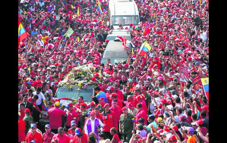 Internacional | El funcionario toma la presidencia provisional luego del fallecimiento de Hugo Chávez Nicolás Maduro ya despacha como presidente interino de Venezuela El primer decreto firmado por Maduro como presidente interino de Venezuela fue decretar siete días de duelo nacional por la muerte de Chávez Por: EL INFORMADOR 7 de marzo de 2013 - 02:30 hs CARACAS, VENEZUELA (07/MAR/2013).- El hasta ahora vicepresidente venezolano, Nicolás Maduro, firmó el martes pasado su primer decreto como presidente encargado tras la muerte del mandatario Hugo Chávez, al ordenar siete días de duelo en el país sudamericano, según la Gaceta Oficial publicada ayer. Este miércoles, miles de sus simpatizantes lo acompañaron en un cortejo fúnebre en Caracas que partió desde el Hospital Militar, donde falleció, hasta la Academia Militar, donde se instaló por tres días una capilla ardiente con sus restos. “Se declaran siete días de Duelo Nacional, entre el 5 y el 11 de marzo de 2013, por el lamentable y penoso fallecimiento e irreparable pérdida del héroe de la patria Hugo Rafael Chávez Frías”, reza el texto estampado con la firma de Maduro. Nicolás Maduro, que se desempeñaba como vicepresidente desde la reelección de Chávez en octubre pasado, asumió la Presidencia amparado en el Artículo 233 de la Constitución venezolana, dijo ayer la procuradora, Cilia Flores. La situación tras la muerte de Chávez es excepcional, pues él no tomó posesión de su tercer mandato el 10 de enero ante la Asamblea Nacional. “En el momento en que él (Chávez) desaparece físicamente inmediatamente y de forma automática se pone en vigencia el Artículo 233 que establece que se encarga el vicepresidente y por un lapso de 30 días se convocará a nuevas elecciones”, que deberán celebrarse en 180 días. El ministro de Comunicación e Información y yerno de Chávez, Ernesto Villegas, aseguró que la Constitución permite que el vicepresidente ejecutivo (hoy presidente interino), Maduro, se lance como candidato en las elecciones presidenciales, dijo al canal de noticias internacional NTN24. Por otra parte, el Presidente de México, Enrique Peña Nieto, viajará hoy a Venezuela a fin de participar mañana en las exequias del mandatario Hugo Chávez Frías. Temas América Latina Venezuela Hugo Chávez Nicolás Maduro Lee También El "próximo premio será la libertad de Venezuela": María Corina Machado Chivas y América empatan en partido amistoso 'Chicharito' marca su primer gol al América en partido amistoso "Chucky" Lozano reconoce que jugaría en Chivas o en América Recibe las últimas noticias en tu e-mail Todo lo que necesitas saber para comenzar tu día Registrarse implica aceptar los Términos y Condiciones