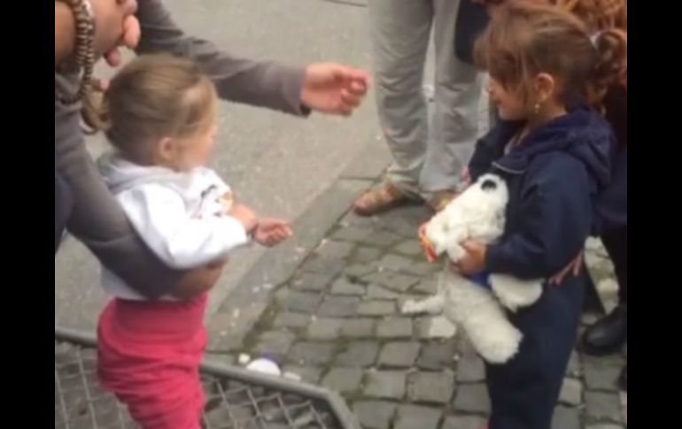 Internacional | Una pequeña alemana compartió sus caramelos con otra que llegó a ese país Niña regala dulces a refugiada y conmueve en redes sociales Una pequeña alemana compartió sus caramelos con otra que llegó a ese país Por: SUN 9 de septiembre de 2015 - 13:01 hs Las pequeñas interactúan y se saludan en el clip. TWITTER / @CassVinograd BERLÍN, ALEMANIA (09/SEP/2015).- El video de una niña alemana que comparte sus dulces con una pequeña refugiada que llegó a ese país el pasado fin de semana se ha vuelto viral al presentar otro rostro de la crisis de refugiados en Europa. En las ciudades alemanas de Munich y Berlín los solicitantes de asilo son aparentemente bienvenidos e incluso han sido recibidos con alimentos o abrigos. El clip de video, subido a la red social Vine por la reportera de NBC Cassandra Vinograd, había sido visto hasta la mañana de hoy miércoles por más de 900 mil usuarios desde que se subió el pasado lunes. En el video llamado “Un dulce momento... Una niña alemana y una joven refugiada recién llegada”, se observa la interacción entre las dos niñas en el intercambio de un dulce para dar la bienvenida. Alemania es uno de los países que ha anunciado abiertamente su intención de permitir el paso de solicitantes de asilo, por lo que se prepara para recibir a unas 800 mil personas, mucha huyendo de la guerra civil siria. No obstante, el día de ayer el vicecanciller, ministro de Economía y líder del Partido Socialdemócrata (SPD), Sigmar Gabriel, había calificado de "asumibles" por la primera economía de la UE hasta 500 mil refugiados. Por su parte la canciller alemana, Angela Merkel llamó a dar la "máxima prioridad" a la integración de los refugiados en la sociedad y el mercado laboral de su país, respaldada en su solidez económica y sin renunciar al objetivo de la consolidación presupuestaria. Temas Europa Alemania Niños Migrantes Redes Sociales Lee También Esta columna trata sobre Omar Bravo (y no) El efecto Donald Trump Esta es la verdadera identidad del "Juan Gabriel" captado en París "Streamer" transmite su parto en vivo y causa revuelo en redes sociales Recibe las últimas noticias en tu e-mail Todo lo que necesitas saber para comenzar tu día Registrarse implica aceptar los Términos y Condiciones