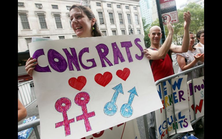 Internacional | Fuerte mensaje para otros estados Nueva York celebra bodas entre parejas del mismo sexo Cientos de parejas de hombres y mujeres se preparaban a casarse durante el primer día de vigencia Por: EL INFORMADOR 25 de julio de 2011 - 04:21 hs El matrimonio entre personas del mismo sexo está prohibido en 39 estados de la unión americana. REUTERS / NUEVA YORK, ESTADOS UNIDOS (25/JUL/2011).- Una fiebre de bodas se apoderó de Nueva York ayer domingo cuando cientos de parejas de hombres y mujeres se aprestaban a casarse durante el primer día de vigencia de la ley sobre matrimonio homosexual en el Estado. Nueva York es la sexta más grande Entidad en los Estados Unidos en permitir estas uniones civiles. En Connecticut, Iowa, Massachusetts, Nueva Hampshire, Vermont y el distrito de Columbia también está permitido. Delaware, Hawai, Illinois y Nueva Jersey han aprobado las uniones de personas del mismo sexo, mientras que el matrimonio entre homosexuales está prohibido específicamente en 39 estados. Temas Norte América Estados Unidos Matrimonio homosexual Lee También China amenaza con "pelear hasta el final" si EU mantiene los nuevos aranceles Estos son los estados en alerta por posible propagación de dengue Despliegan operativo tras bloqueos en Chiapas Así se prevé que avance el desarrollo de "Sonia" en México Recibe las últimas noticias en tu e-mail Todo lo que necesitas saber para comenzar tu día Registrarse implica aceptar los Términos y Condiciones