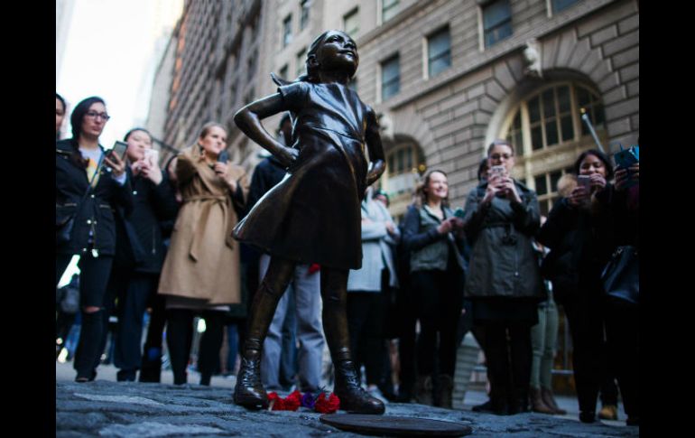 NUEVA YORK, ESTADOS UNIDOS (08/MAR/2017).- La ciudad de Nueva York celebró hoy miércoles el Día Internacional de las Mujeres, con participaciones en un paro laboral internacional, una marcha en la que se reportaron arrestos y la estatua de una "niña sin miedo" colocada en la zona financiera de Wall Street. El paro fue organizado a nivel nacional por el mismo colectivo que convocó a la Marcha de las Mujeres un día después de la toma de posesión del presidente Donald Trump. Es imposible conocer el nivel de participación en el paro, pero de acuerdo con la versión electrónica de la revista Nueva York, el mayor efecto pudo registrarse en la poca asistencia de mujeres a las universidades de la ciudad. El paro llamaba además a no comprar, cesar las labores del hogar y cualquier otra actividad remotamente similar al trabajo, como maquillarse u ofrecer "sonrisas falsas" por compromiso. El objetivo fue hacer ver "el enorme valor que las mujeres de todos los estratos ofrecen a nuestro sistema socioeconómico, pese a que reciben salarios más bajos y experimentan mayores desigualdades, vulnerabilidad a la discriminación, acoso sexual e inseguridad laboral", según las organizadores. Un paro fue orquestado igualmente por algunas congresistas en Washington DC, con la líder demócrata de la Cámara de Representantes, Nancy Pelosi, como la mujer de más alto rango en unirse por unos minutos a esta protesta. Al menos un centenar de mujeres se reunió frente al hotel internacional Trump, al lado de Central Park, a fin de protestar por las políticas del presidente contrarias a los derechos de las mujeres, como su propuesta de retirar fondos a clínicas de salud reproductiva. Por lo menos una docena de mujeres fue arrestada por bloquear el tránsito en la avenida Broadway, de acuerdo con medios de información. La celebración del Día Internacional de las Mujeres tomó además un cariz más simbólico luego de que una empresa de publicidad, McCann, montara una estatua titulada "Niña sin miedo" que encara a la escultura del toro que embiste y que simboliza el poderío de Wall Street. La estatua de bronce, de una niña con las manos en las cintura que mira de manera resuelta al enorme toro que simboliza los mercados financieros, durará en ese lugar una semana. Docenas de personas, principalmente mujeres y niñas, se reunieron en torno a la estatua para tomarse fotografías. De acuerdo con la agencia McCann, la estatua tiene la intención de llamar la atención sobre el escaso número de mujeres en los consejos directivos de las empresas privadas.