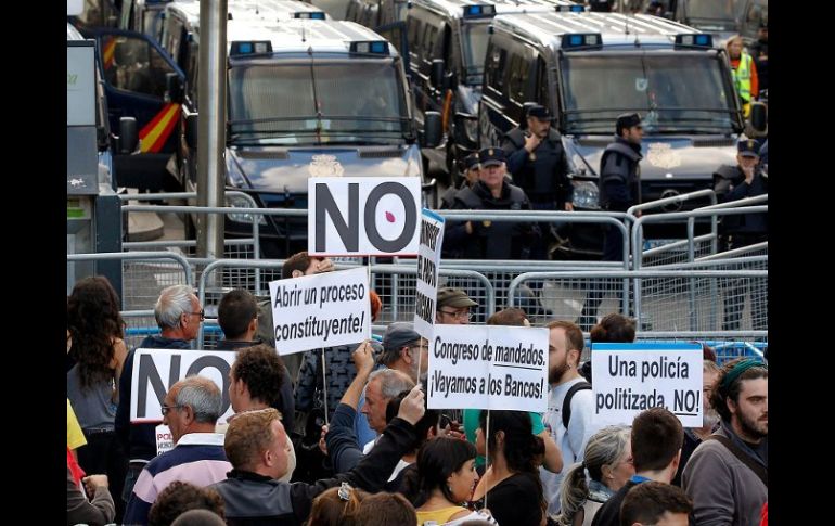 Internacional | En pequeñas pancartas blancas lucía el NO de los 'indignados' a los recortes Nueva manifestación cerca del Congreso en Madrid En pequeñas pancartas blancas lucía el NO de los 'indignados' a los recortes presupuestarios previstos de aquí a 2014 Por: AFP 26 de septiembre de 2012 - 15:53 hs MADRID, ESPAÑA (26/SEP/2012).- Miles de manifestantes del movimiento de los "indignados" se congregaron de nuevo este miércoles cerca del Congreso de los Diputados en Madrid, a gritos de "Gobierno dimisión", ante un fuerte dispositivo policial, al día siguiente de una manifestación salpicada de violencia. "Que no, que no, que no tenemos miedo", gritaban los manifestantes en la plaza de Neptuno, a una buena distancia del Congreso debido a las barreras, los agentes antidisturbios y la quincena de furgones de policía apostados junto a la cámara. "Que se vayan", podía leerse en una gran pancarta, mientras los manifestantes, algunos de ellos sentados, se instalaban tranquilamente en la plaza. En unas pequeñas pancartas blancas lucía el "NO" de los 'indignados' a los recortes presupuestarios previstos de aquí a 2014, empezando por los 39 mil millones de euros que se esperan en los presupuestos de 2013, que el gobierno presentará el jueves. "Vine ayer y voy a venir todos los días para decir no a este sistema, a este tipo de economía", dice Ángel Alcaide, un ingeniero 30 años que luce una pancarta en la que se lee "Dimisión". "Pedimos la dimisión del gobierno porque no ha cumplido su programa electoral. Ha subido los impuestos y ha tocado las pensiones", añade. Carmen López, una manifestante de 26 años residente en Londres, cuenta que ha venido al igual que el día anterior para protestar contra un gobierno que "mantiene sus privilegios y sus lujos", mientras "el pueblo tiene solamente recortes en la salud y la educación". "Vivo en Londres porque todos los jóvenes se van de este país donde no hay trabajo", añade. En la gran manifestación del martes, también en la plaza de Neptuno, hubo enfrentamientos entre policías y manifestantes, con un saldo de más de 60 heridos y 35 detenciones. El objetivo, anunciado en las redes sociales, era "rodear el Congreso", para protestar contra las medidas de austeridad emprendidas por el Gobierno conservador de Mariano Rajoy para reducir el déficit. Temas Europa España Manifestaciones en el mundo Crisis Lee También España consigue su boleto a los cuartos de final del Mundial Sub-20 Derrumbe de edificio en Madrid deja cuatro desaparecidos y tres heridos Lo peor es que Claudia también tiene sus dudas Sobrevivientes de tortura inician huelga de hambre Recibe las últimas noticias en tu e-mail Todo lo que necesitas saber para comenzar tu día Registrarse implica aceptar los Términos y Condiciones