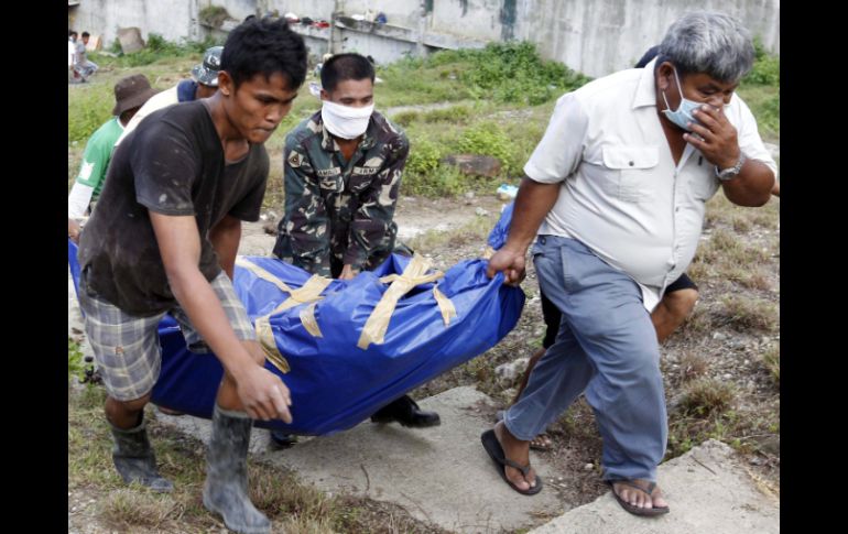 Internacional | La Cruz Roja filipina informó que hay 563 desaparecidos hasta el momento Número de muertos por tormenta en Filipinas sobrepasa los 900 La mayoría de las muertes se produjeron en las ciudades portuarias de Cagayán de Oro y de Iligand en la isla de Mindanao Por: AFP 19 de diciembre de 2011 - 15:32 hs MANILA, FILIPINAS (19/DIC/2011).- El total de muertos causados por la tormenta tropical ''Washi'', que arrasó el sur de Filipinas, es de 927 muertos, declaró el lunes el jefe del consejo nacional de prevención de catástrofes. La mayoría de las muertes se produjeron en las devastadas ciudades portuarias de Cagayán de Oro y de Iligand en la isla de Mindanao. El nuevo balance fue comunicado después de que socorristas del gobierno hallaran más cuerpos en Mindanao, donde la tormenta Washi ocasionó fuertes lluvias y provocó los desbordamientos de ríos que arrasaron poblaciones enteras durante el fin de semana. "Hay 927 muertos. Hemos perdido la cuenta de los desaparecidos", dijo Benito Ramos, jefe del organismo nacional de prevención de catástrofes. El balance anterior era de 662 muertos y 82 desaparecidos. La Cruz Roja filipina informó por su parte de 713 muertos y 563 desaparecidos. Temas Asia Filipinas Tormenta tropical Inundaciones en el mundo Recibe las últimas noticias en tu e-mail Todo lo que necesitas saber para comenzar tu día Registrarse implica aceptar los Términos y Condiciones