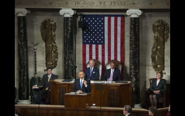 Solicita la autorización del uso de fuerza contra yihadistasEl presidente Obama reitera que las fuerzas unidas bajo el liderazgo estadounidense han parado el avance del Estado Islámico. Además, menciona el apoyo que ha brindado a países europeos.“Esta noche le pido al Congreso que le muestre al mundo que estamos unidos en esta misión y que apruebe una resolución que autorice el uso de la fuerza contra ISIL”.“En segundo lugar, estamos demostrando el poder de la diplomacia y la fuerza estadounidenses. Estamos defendiendo el principio de que las naciones grandes no pueden intimidar a las pequeñas: es lo que hemos hecho al oponernos a la agresión rusa, respaldar la democracia en Ucrania y tranquilizar a nuestros aliados de la OTAN. Bueno, lo cierto es que quien se mantiene hoy fuerte y unida a nuestros aliados es Estados Unidos, mientras que Rusia está aislada y con una economía en ruinas. Es así como Estados Unidos lidera: no con fanfarronadas, sino con determinación persistente y constante.”