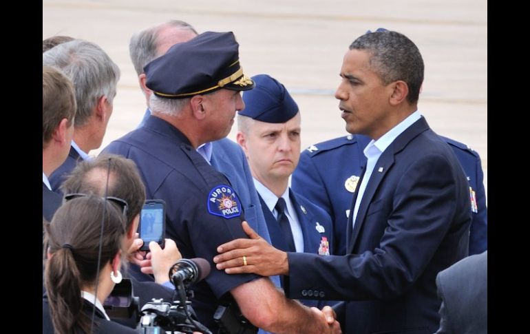 Internacional | El presidente de EU se reunirá con víctimas de tiroteo en cine Obama llega a Colorado tras masacre El presunto asesino está detenido en condiciones de aislamiento con el fin de preservar su seguridad Por: AFP 22 de julio de 2012 - 16:52 hs Barack Obama (D), abraza al jefe de la Policía de Aurora, Dan Oates, en la Base de la Fuerza Aérea de Buckley. EFE / BASE AEREA DE BUCKLEY, EU, (22/JUL/2012).- El presidente estadounidense Barack Obama llegó a Colorado este domingo para reunirse con familiares de las víctimas de la masacre en un cine de la ciudad de Aurora. Doce personas murieron y otras 58 resultaron heridas, casi todas de bala, cuando un hombre vestido de negro y con chaleco blindado y una máscara antigás irrumpió en un cine en el que se estrenaba Batman "The Dark Knight Rises", poco antes de la medianoche del viernes. Obama "se reunirá con familiares de las víctimas del tiroteo así como con autoridades locales" antes de dirigirse a San Francisco (California, suroeste), había anunciado más temprano la Casa Blanca en un comunicado. El presunto asesino está detenido en condiciones de aislamiento con el fin de preservar su seguridad, dijo el domingo un portavoz de la policía. Temas Norte América Tiroteo Estados Unidos Barack Obama Lee También Lugar de Sudamérica prohíbe Halloween por usar símbolos vinculados a la muerte Equipos que podrían quedar eliminados del Play In en la jornada doble de la Liga MX ¿Dónde ver EN VIVO el partido de J14 América vs Puebla? Asaltan a alcalde electo de Veracruz; le quitan camioneta, pero sale ileso Recibe las últimas noticias en tu e-mail Todo lo que necesitas saber para comenzar tu día Registrarse implica aceptar los Términos y Condiciones